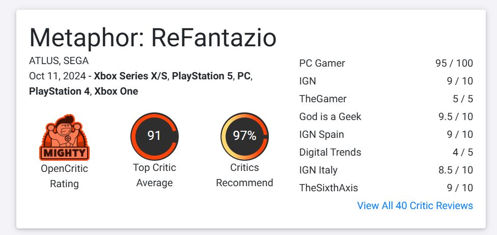 北京时间2024年10月7日晚10点,由日本知名游戏厂商ATLUS开发的高规格JRPG暗喻幻想媒体评分正式解禁。A社是否能重振Jrpg的辉煌,为Jrpg赢得年度最佳的头衔,让我们拭目以待。