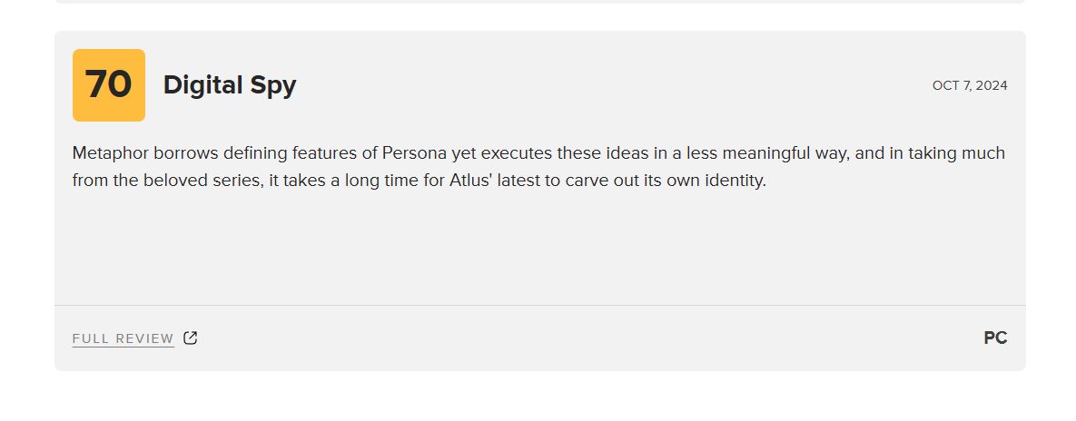 《暗喻幻想》有很多值得欣赏的地方——一个充满政治阴谋的故事和一个令人印象深刻的世界——但奇怪的是,正是与《女神异闻录》的一些联系阻碍了它充分发挥其潜力。