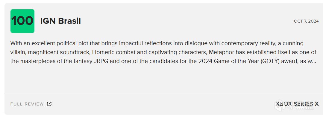 暗喻幻想拥有出色的政治情节,在与当代现实的对话中带来了有影响力的反思,狡猾的恶棍,宏伟的配乐,荷马式的战斗和迷人的角色,暗喻幻想已成为幻想JRPG的杰作之一,也是2024年游戏大奖(GOTY)的候选人之一。
