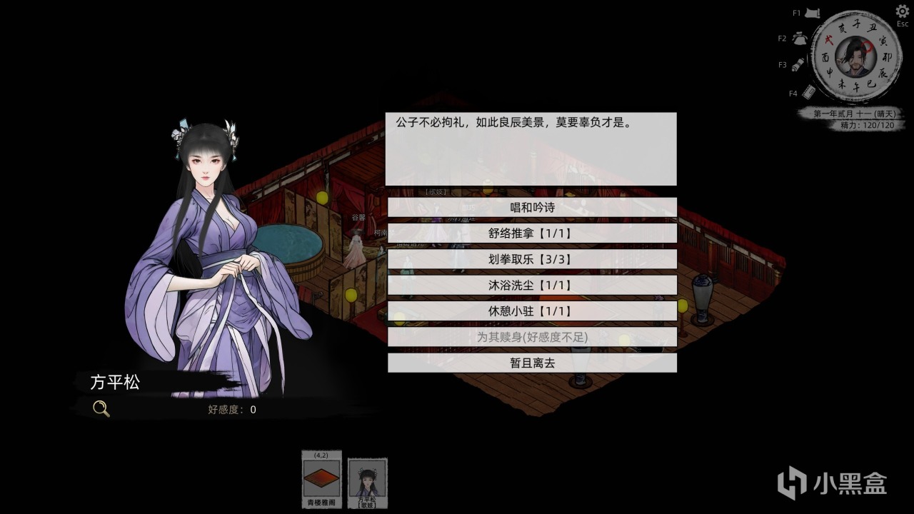 在这个主打高自由度的江湖世界中,玩家甚至可以花费重金前往青楼买醉。“春宵一刻值千金”玩家们可以和歌妓们吟诗作赋,感慨江湖不易;也可以划拳取乐,输的人酌酒一杯;还可以让歌妓们沐浴吸尘,感受她们的小手为你捶腿揉肩的快乐。