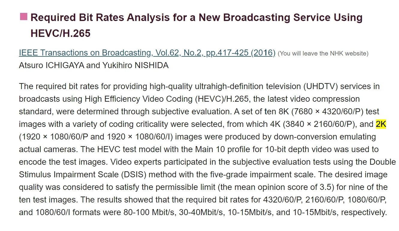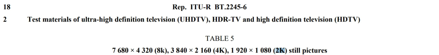 - 除了dci標準之外,1920×1080也被其他標準組織稱爲2K分辨率,如NHK科學技術研究實驗室和國際電聯無線電通信部門