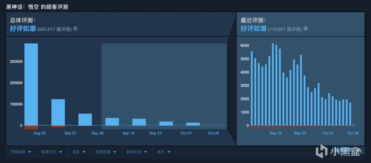(5)持續的好評:在 Steam 平臺上,《黑神話:悟空》的好評率達 96.04%。這顯示出玩家對遊戲品質的高度認可。