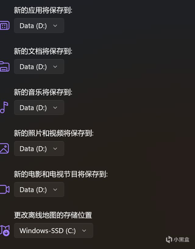 4.按住 win + i 键打开系统设置,找到存储,把更改内容的保存位置全部都改成 d 盘,有效解决c盘爆满问题。
