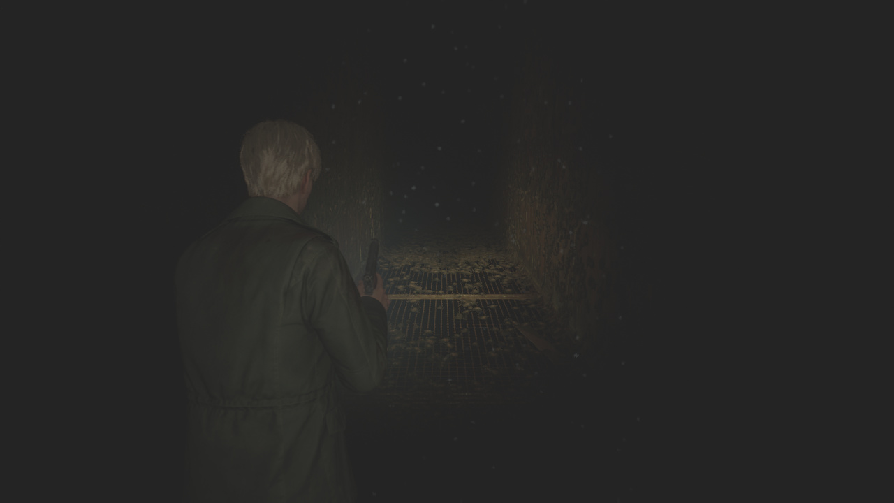 關於遊戲的戰鬥,這是我個人認爲《寂靜嶺2 重製版》最大的扣分點。這在遊戲的早期實機演示中就能初見端倪,正式發售後也依舊如此,那就是手感確實一般,簡而言之就是不論近戰還是遠攻,玩家的擊殺反饋不太明顯,這點在BOSS戰中尤爲明顯。說句難聽的,就我而言,在近戰打擊感這方面,《寂靜嶺2 重製版》甚至不如《木衛四協議》(後者打擊感至少是真的拳拳到肉)。遊戲中還增加了一套樸素的動作機制,那就是躲閃,然而實際手感一般,因爲遊戲並不能對敵人鎖定視角,所以我有時即使是按下了躲避鍵但依舊被敵人擊中,或者打不中敵人。可以看出製作組確實想在戰鬥這部分做出一些創新和改進,但大概是因爲經驗不足,所以依舊存在一些問題,個人表示理解。