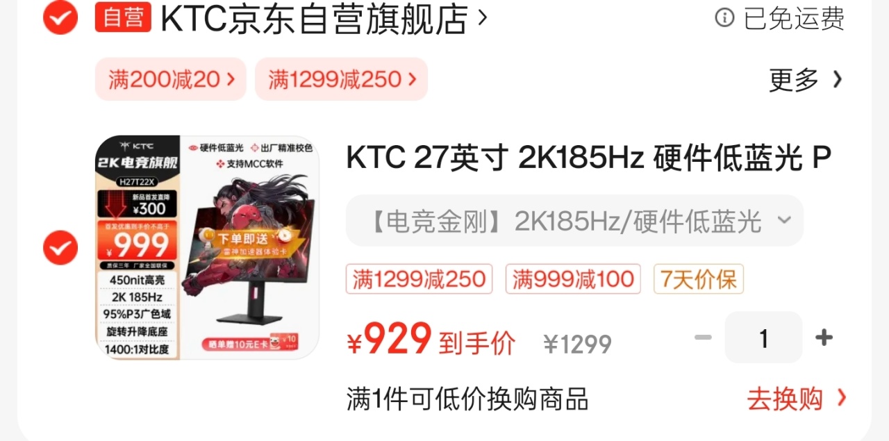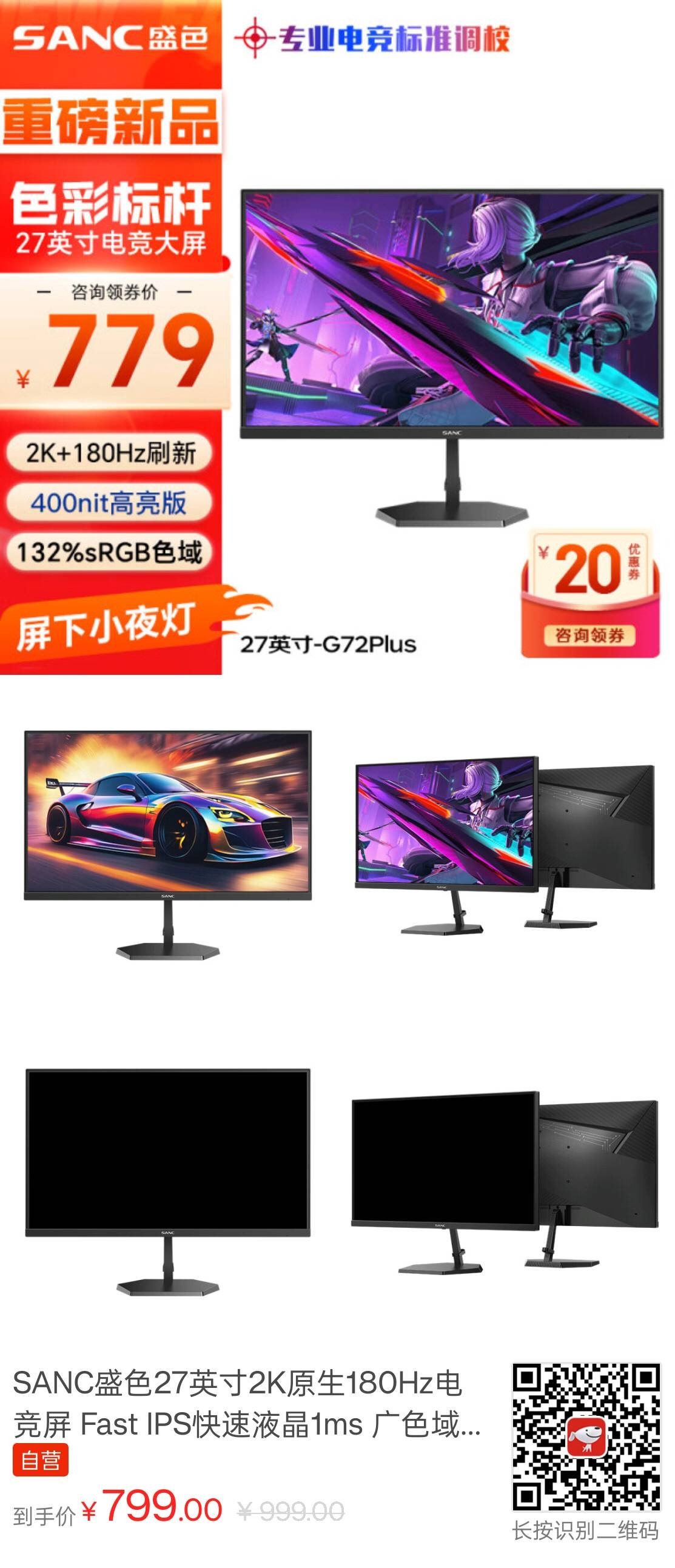 怎么说呢,适合对高刷有需求但是又不是那么多,预算又有限的老哥,低价的同时护眼跟色域也没很差。