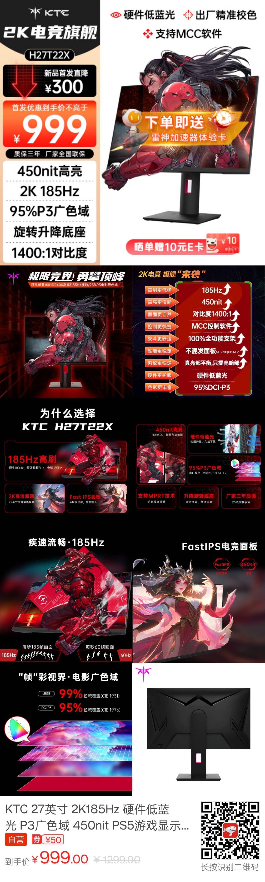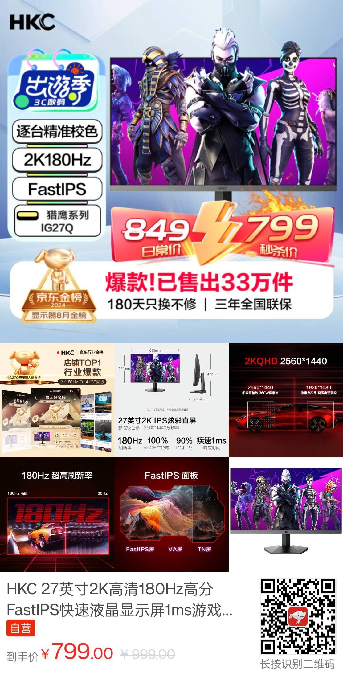 1:HKC s2716q 27 寸 2k100hz,ips广色域低蓝光