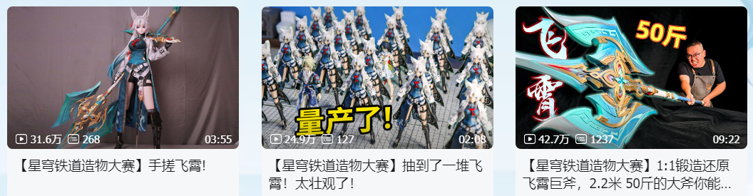 隨便搜索下星穹鐵道的二創,就能看到諸如“黑塔轉圈圈”、“告白”這樣的優秀二創動畫,大量1:1還原角色武器的高技術實物創作,還有“垃圾桶大作戰”、“黑塔的棋局”這些質量紮實的同人遊戲,音樂、畫作、小說更是遍地開花,星穹鐵道的二創作品幾乎涵蓋每一種類。