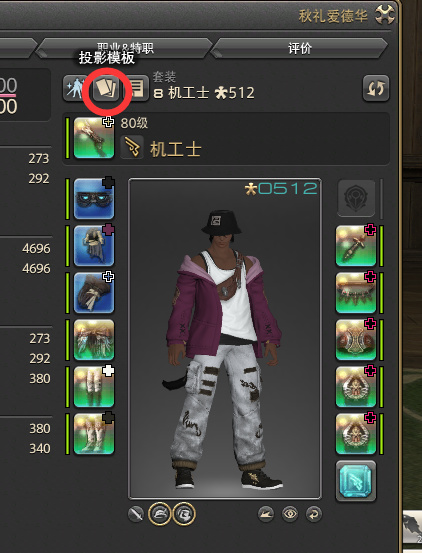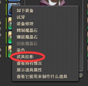 左邊是你穿的裝備,右邊是你想投影的幻化