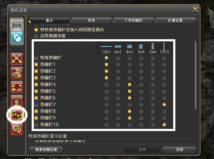 注意通常熱鍵123行是技能行,所以不要勾選通用
