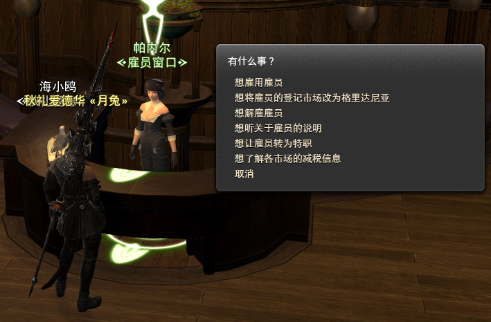 僱員的功能有很多,(前期負責充當玩家的倉庫系統,每個僱員有175格倉庫),每個玩家可以領兩個免費僱員,在三大主城(格里達尼亞,烏爾達哈,利姆薩羅敏薩)的市場都有僱員窗口,