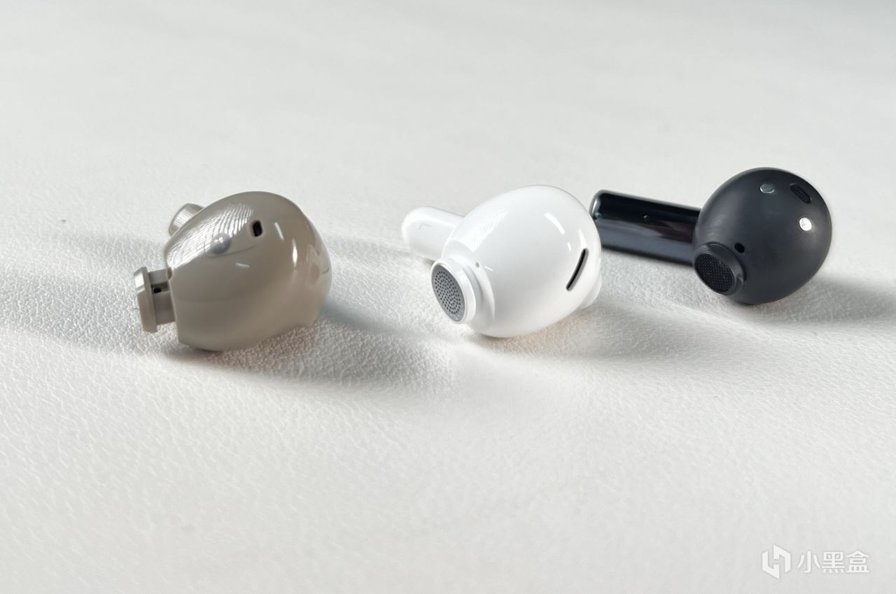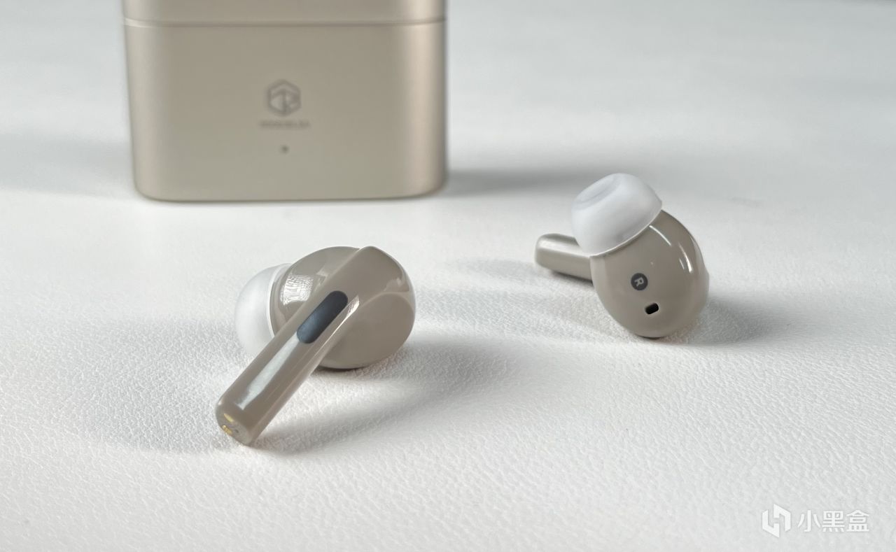 仓盖开合体验良好,整体做工较为精致,耳机为光滑亮面质感,线条感比较重,耳柄为长方体,触控部分做了深色设计。