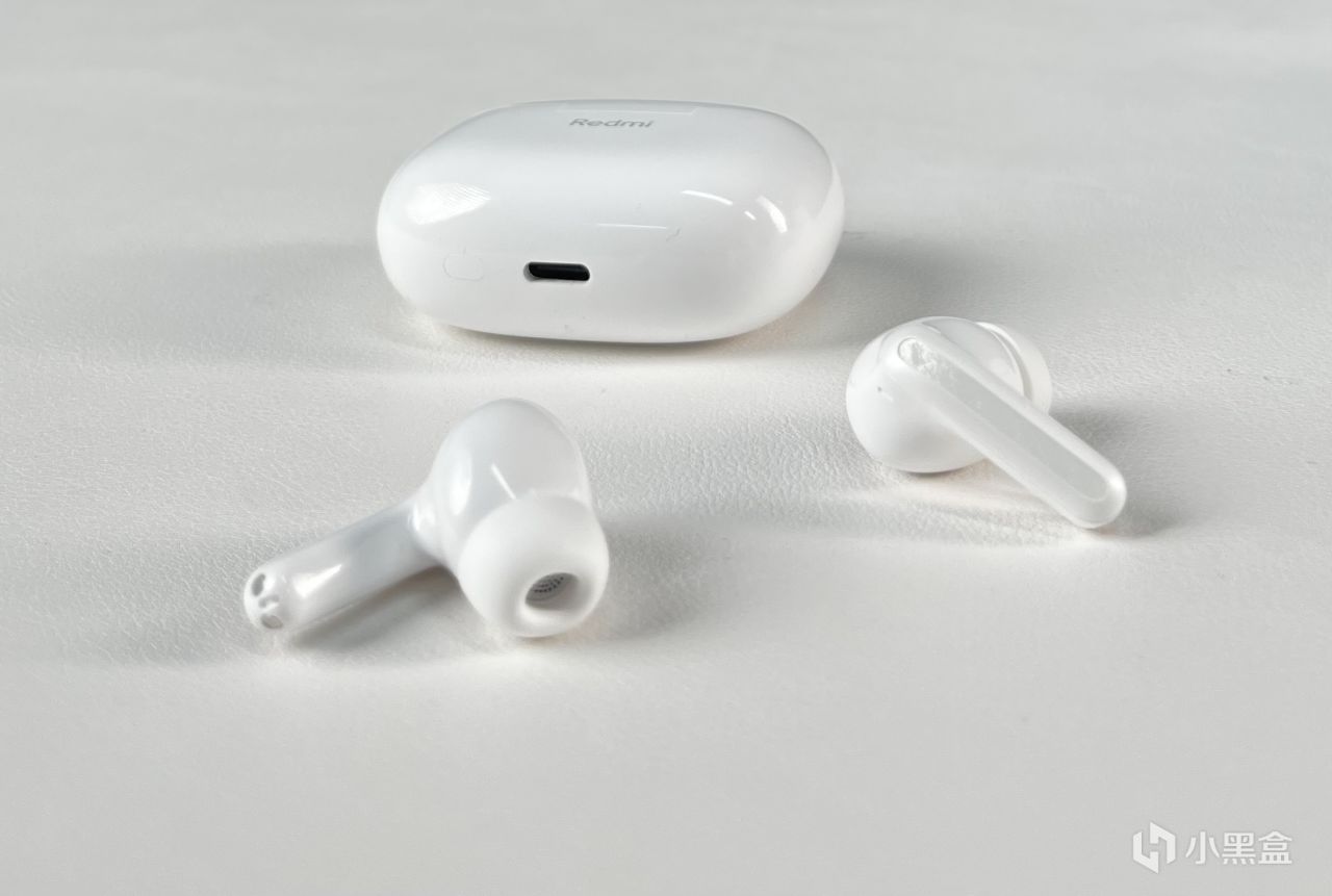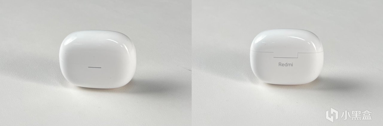 配件还是老一套,耳塞和充电线,pro系列耳机质感从内到外都是在线的,耳机仓为鹅卵石外观设计,光滑亮面质感,指示灯为横向长条状,位于仓盖开合处,“Redmi”的logo在仓身背面。