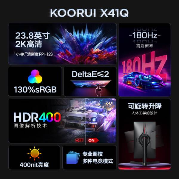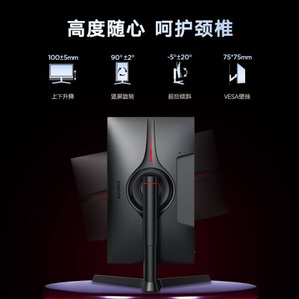 還覆蓋了90% DCI-P3和130% sRGB的廣色域,確保了色彩的準確性和真實性,低藍光技術的應用,減少了有害藍光對眼睛的影響,長時間遊戲也不易產生疲勞。顯示器的支架支持升降、旋轉和俯仰調節,用戶可以根據自己的觀看習慣調整到最舒適的角度。此外,它還支持壁掛,爲用戶提供了更多安裝的靈活性。