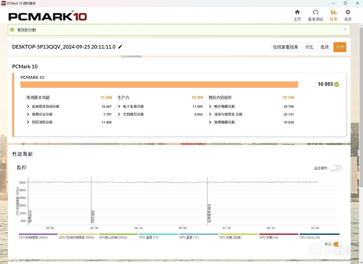 ▼最后跑个PCMARK 10,整体得分10093,分数很高,这套硬件配置很给力。