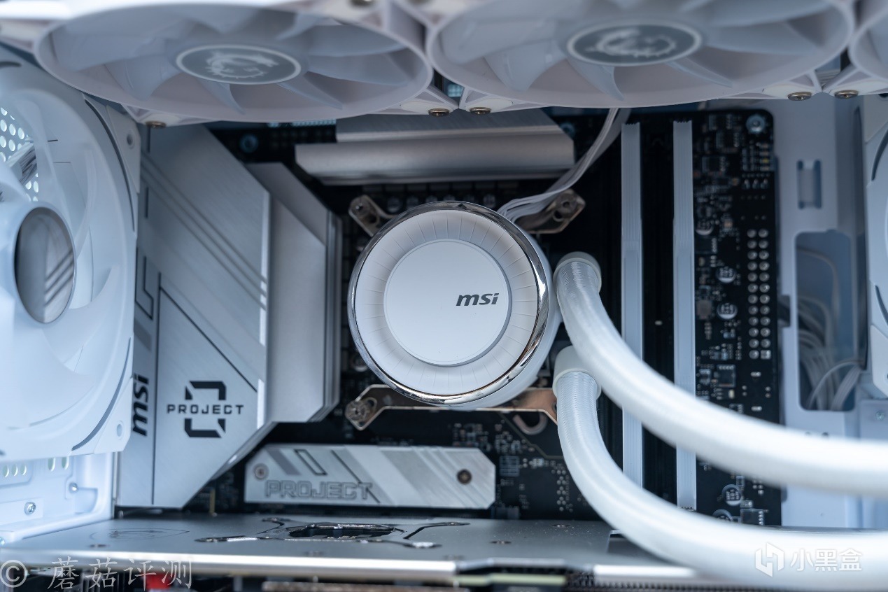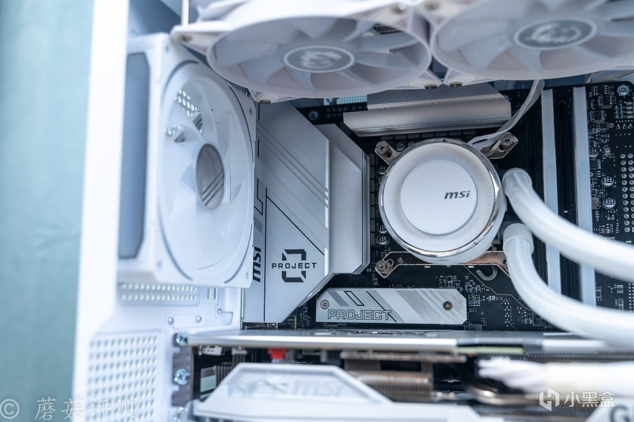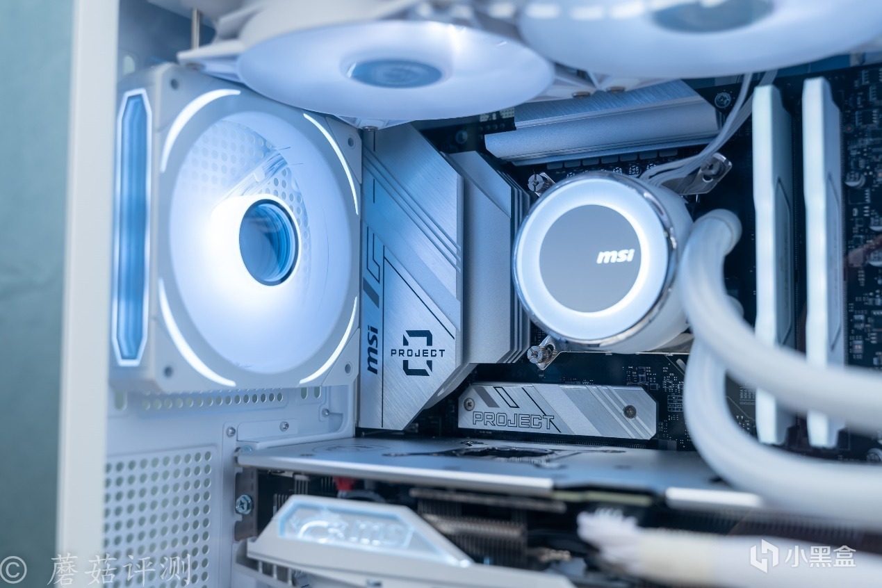 ▼主板用的是微星的B760M PROJECT ZERO背插主板,这块主板的正面覆盖有大量的银色的金属件,表面处理器精致,还有漂亮的涂装。