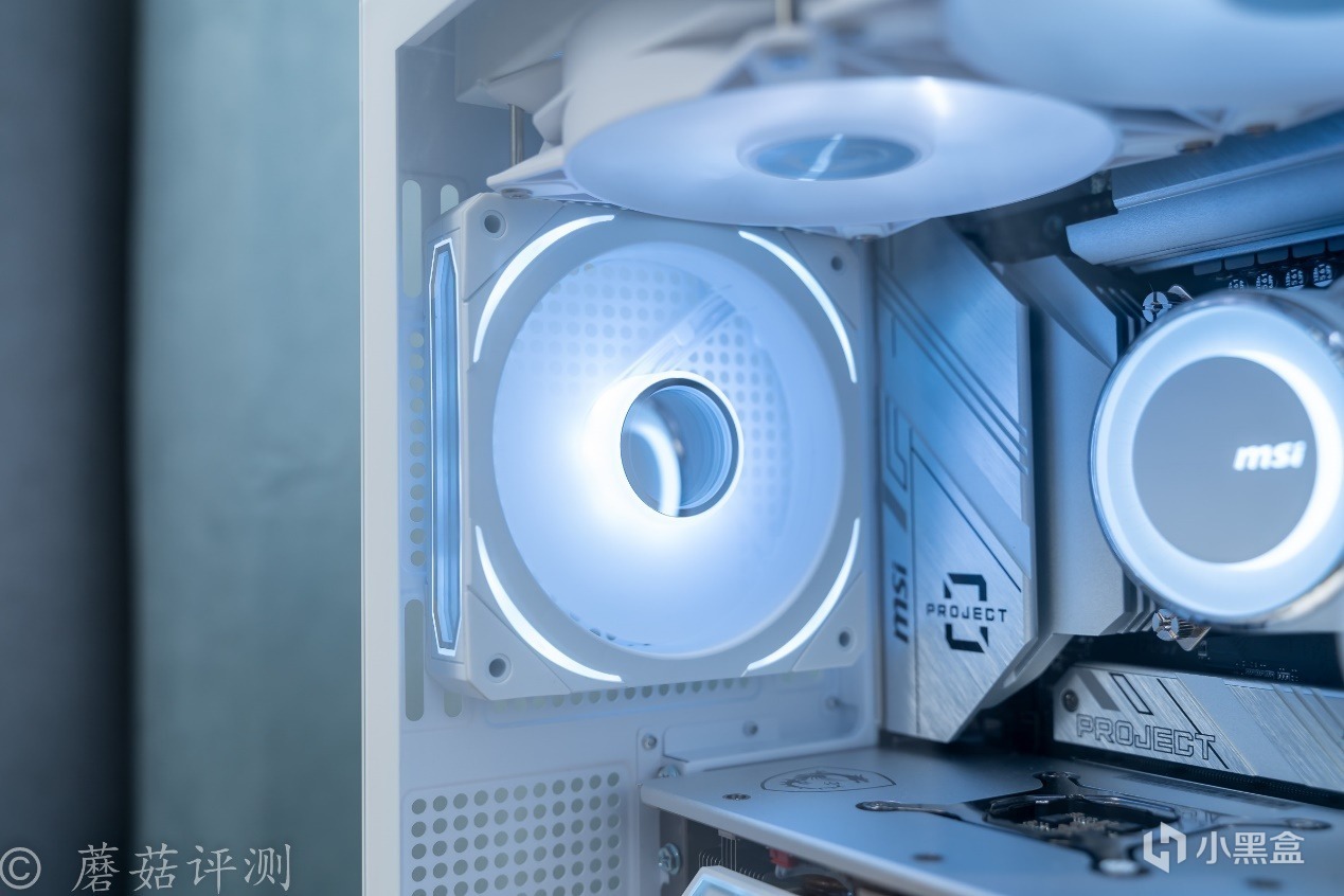 ▼机箱风扇,这款主机也给标配了三把,风扇的侧面和扇叶中间均有无限镜的造型,支持ARGB灯效。