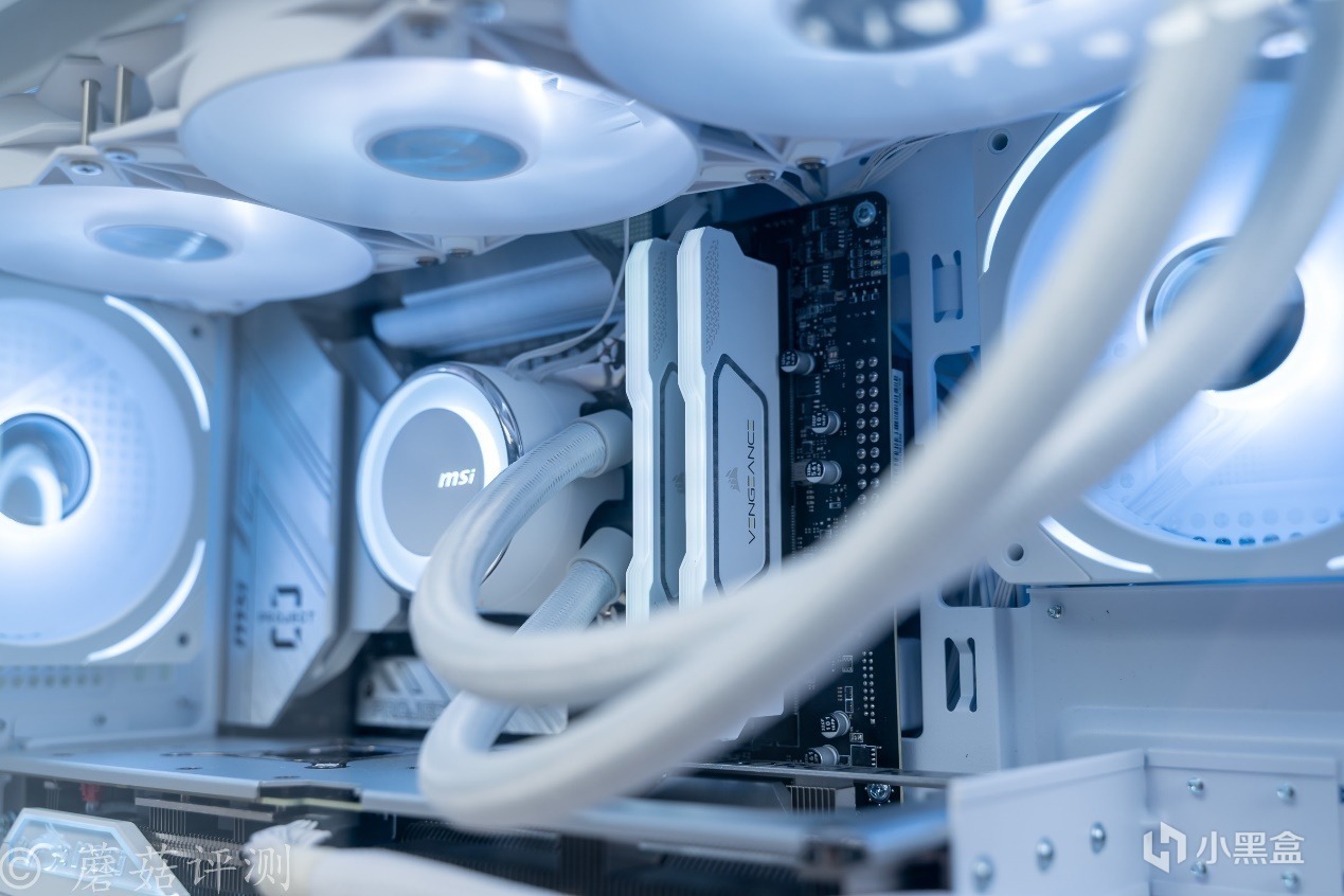 ▼内存用的是海盗船的,16GB*2 6400MHz,这套内存的金属马甲也是白色的,顶部有一整条的RGB灯带。