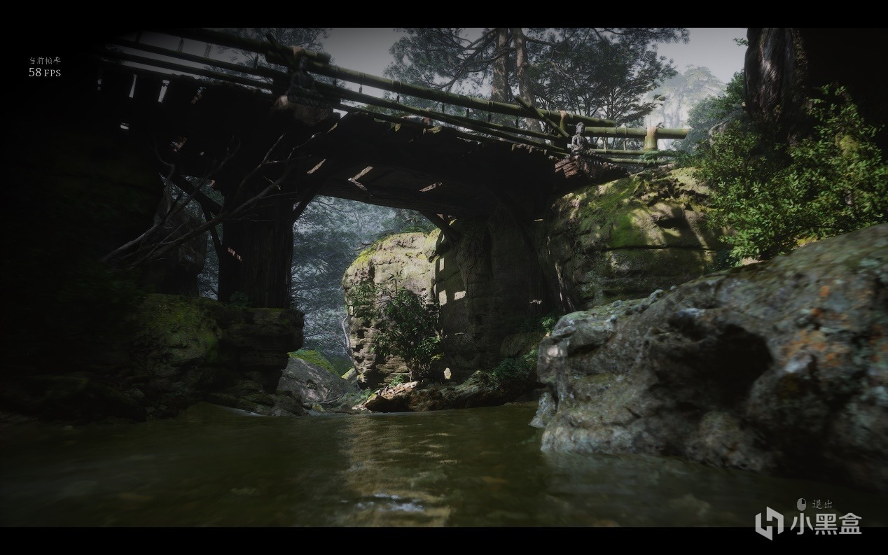 ▼木桥部分的画质非常不错,各种光影效果非常真实,游戏帧数在58帧左右。