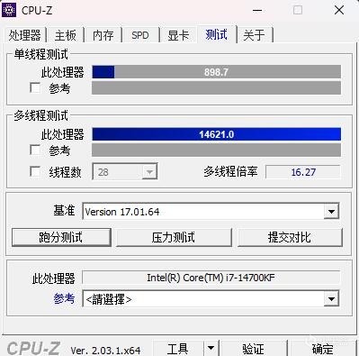 ▼简单跑个测试,单核得分898.7,接近900分,多核得分14621,很强。