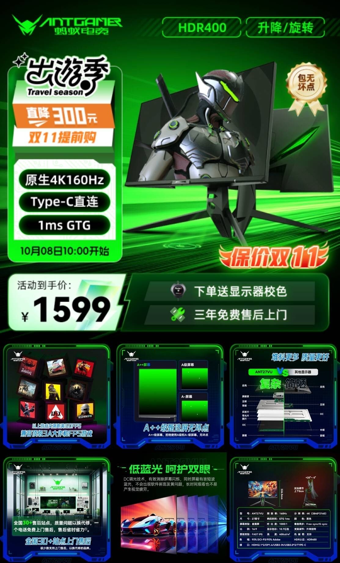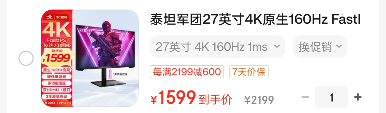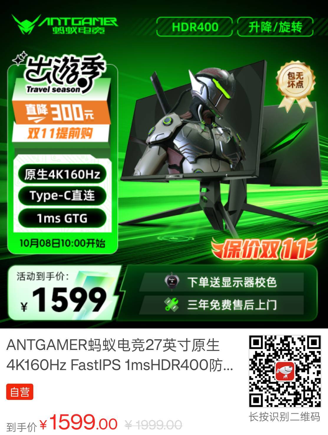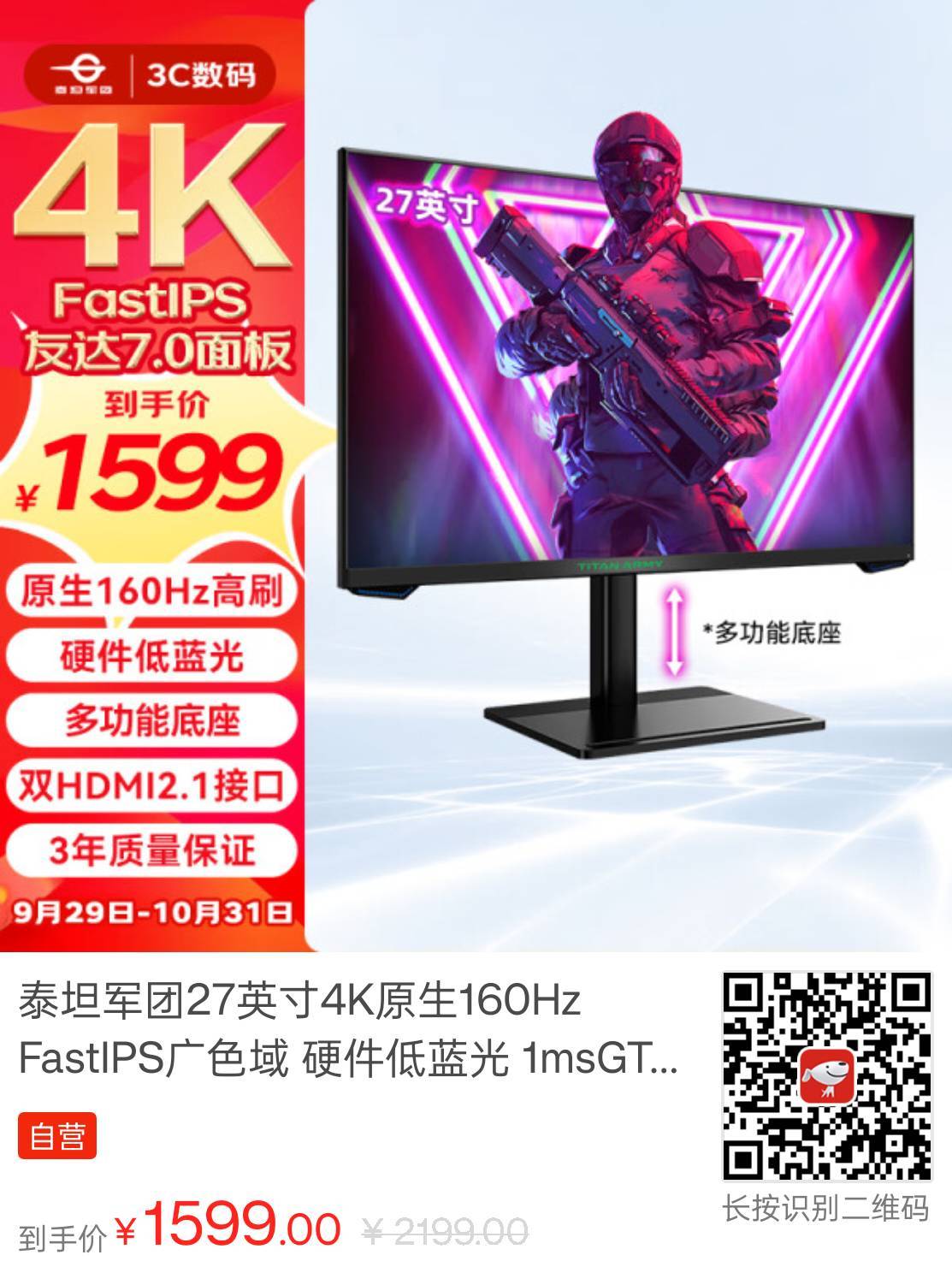 27 寸 4k 160hz fastips 1ms,低藍光,400 尼特亮度,