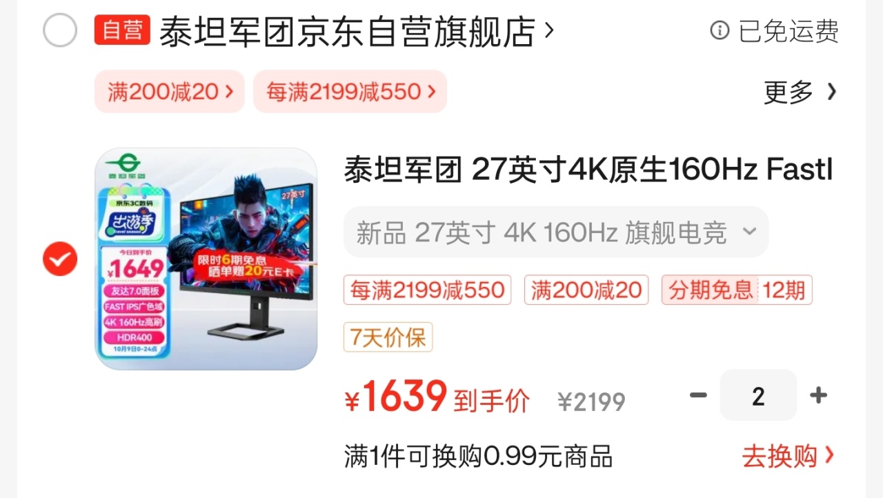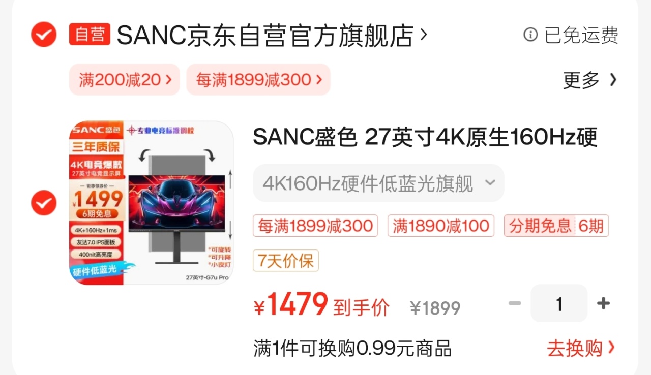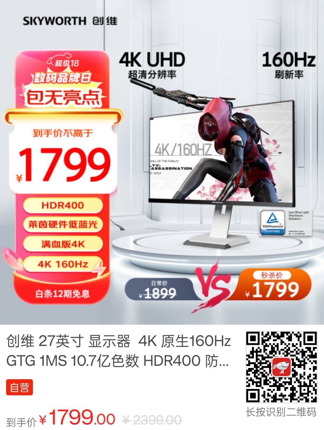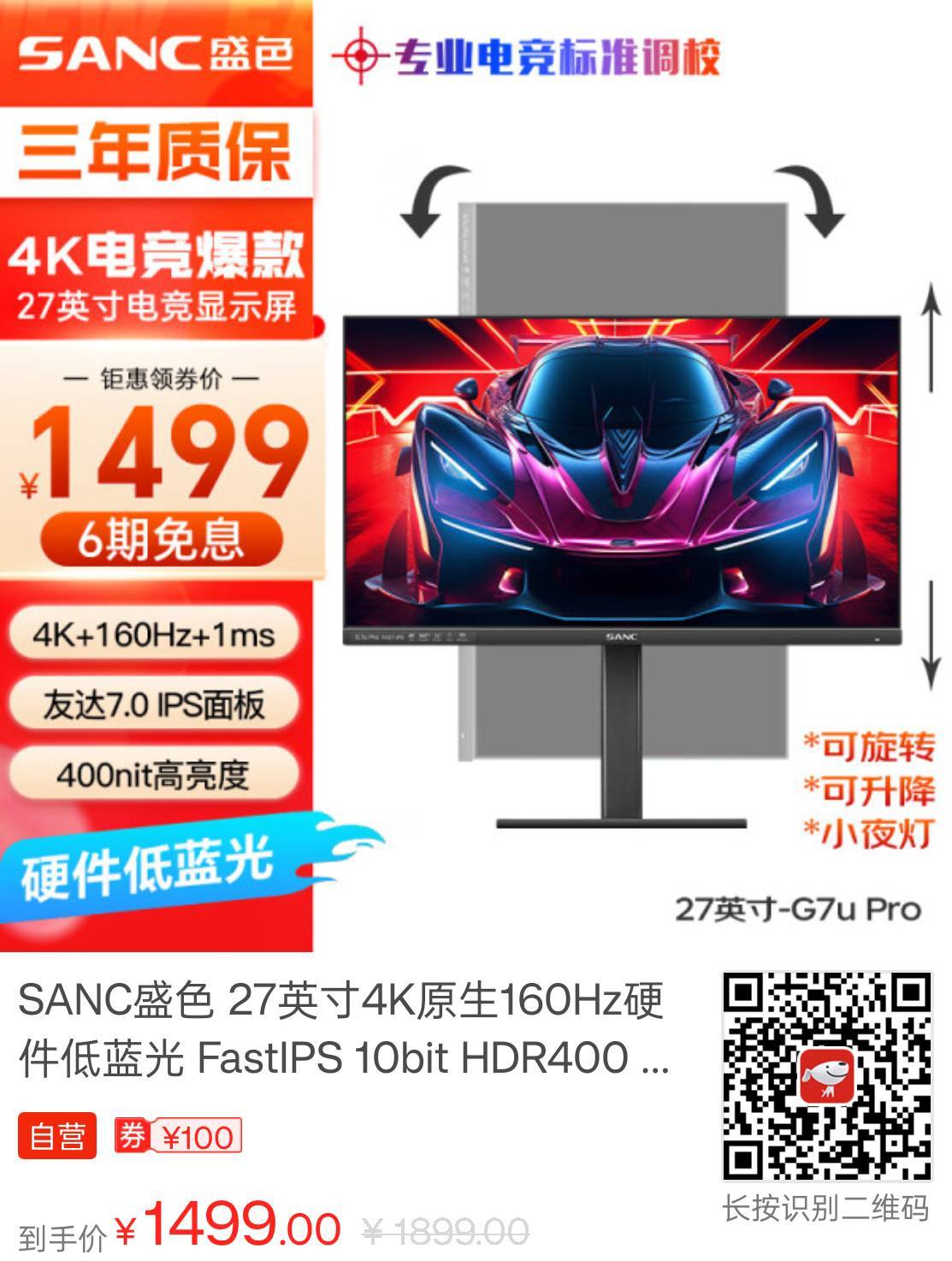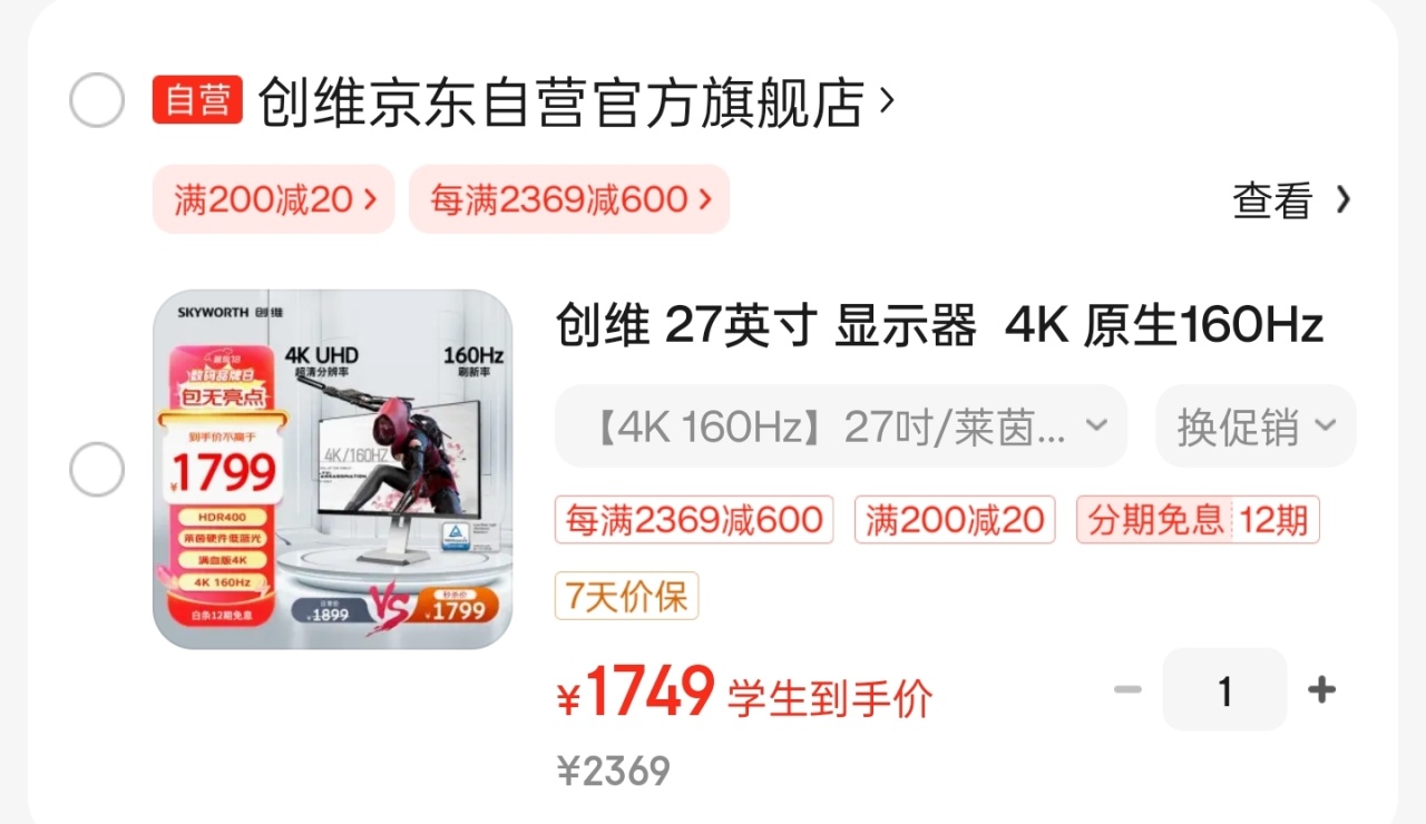 【京東特惠】27寸4K高刷顯示器推薦【2000 以內】