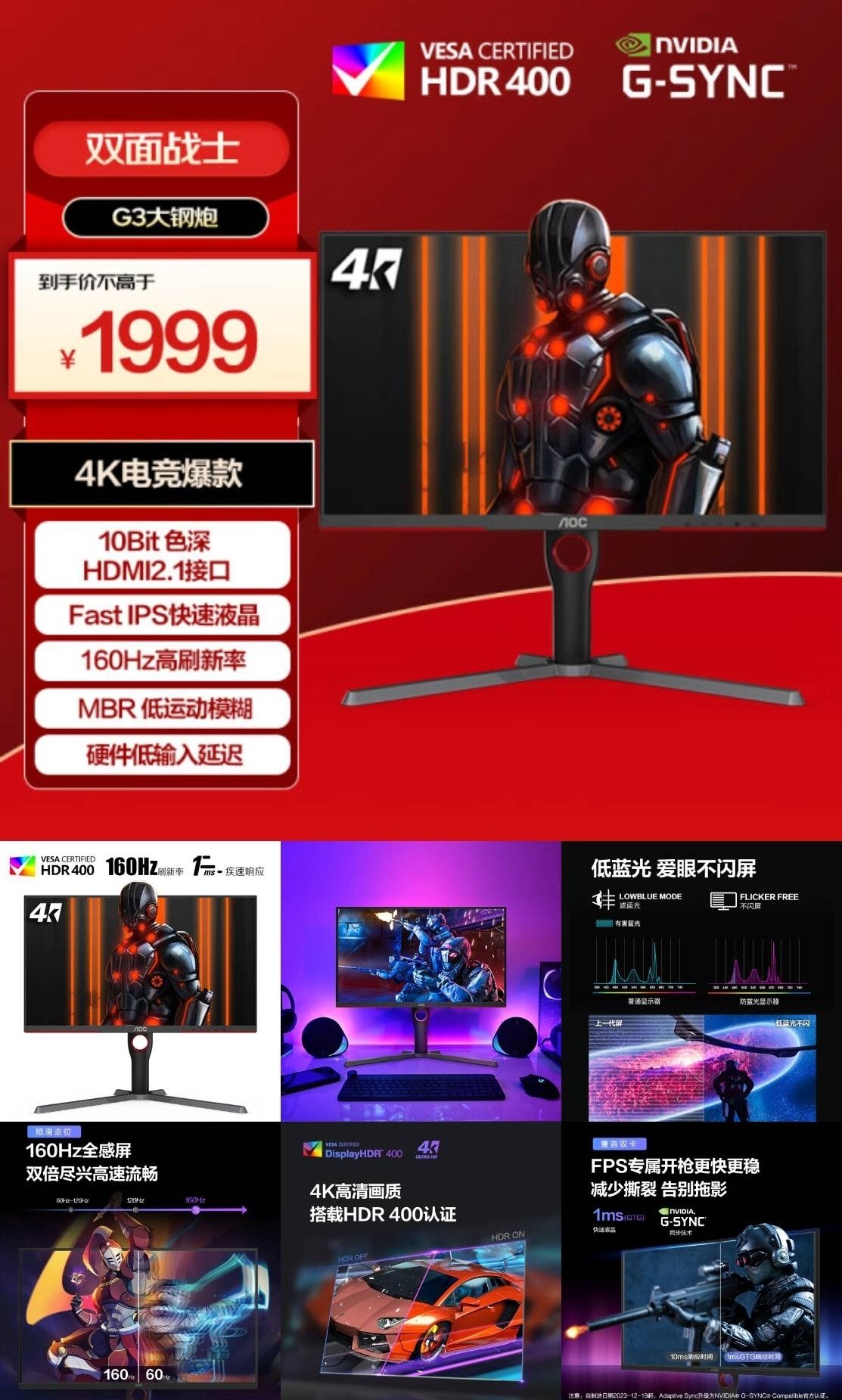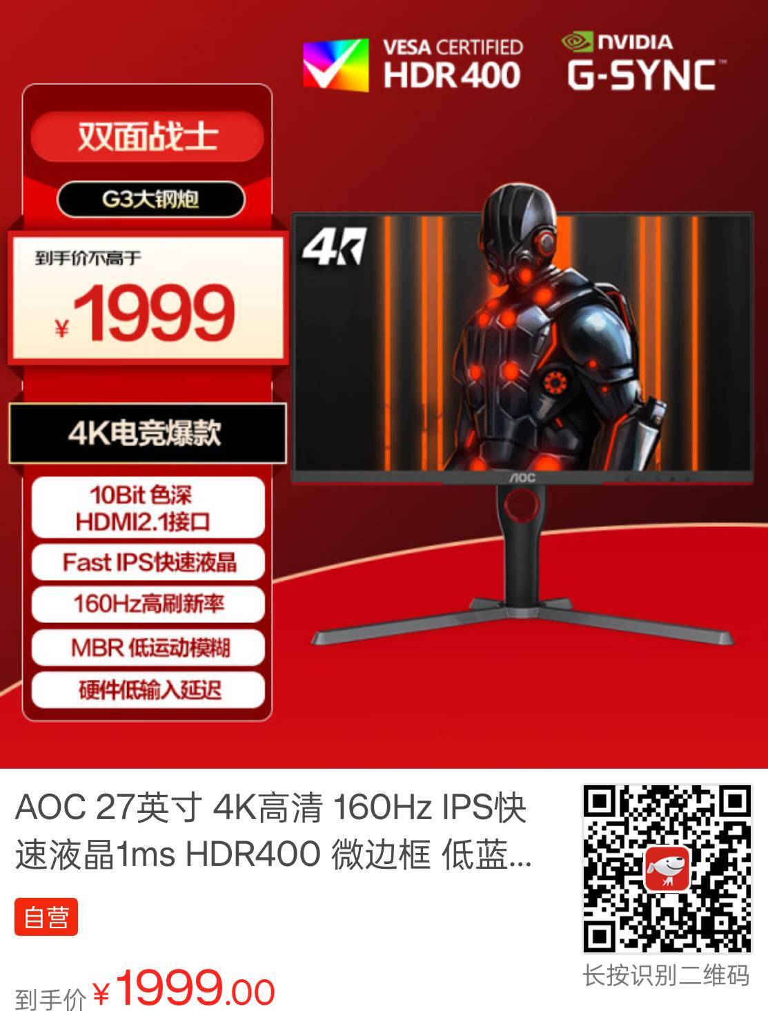 8:AOC G3 大鋼炮  27 寸 4K 160