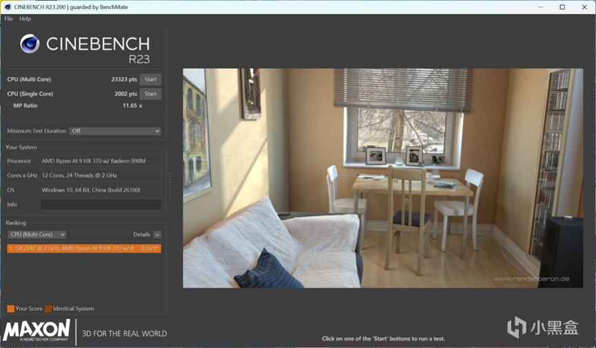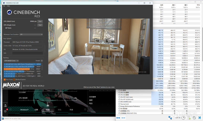 插电模式下,R23 多核23323,单核超过了2000,只能说知道他强,但是一时还很难接受直接来到了这个分数……强的令人感到害怕。