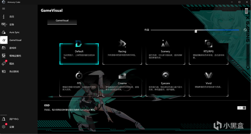 GameVisual预设了非常多的使用环境,但是恕我眼拙,用Cinema没看出什么区别。