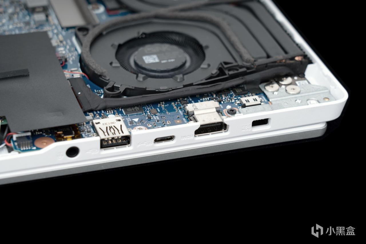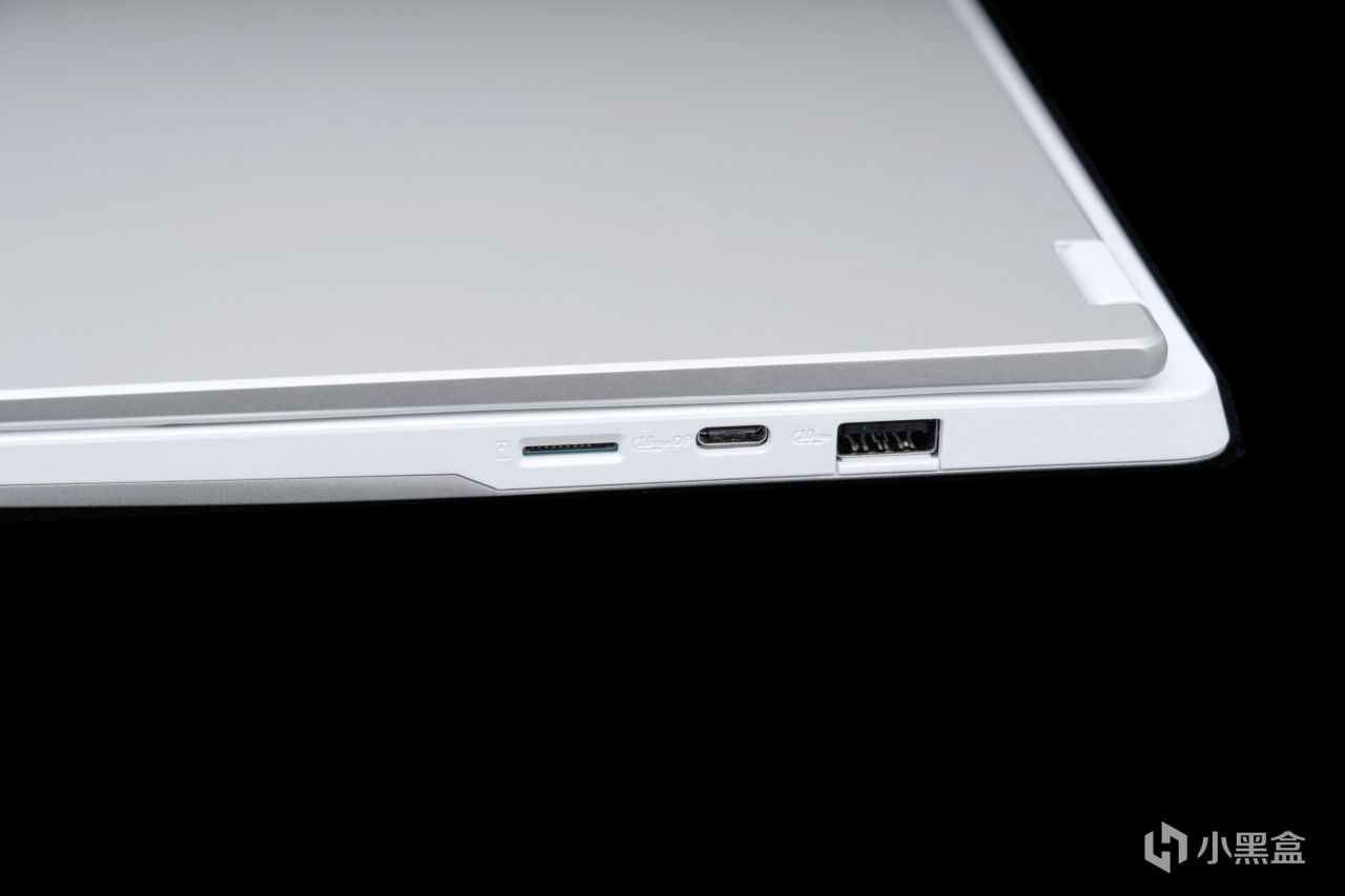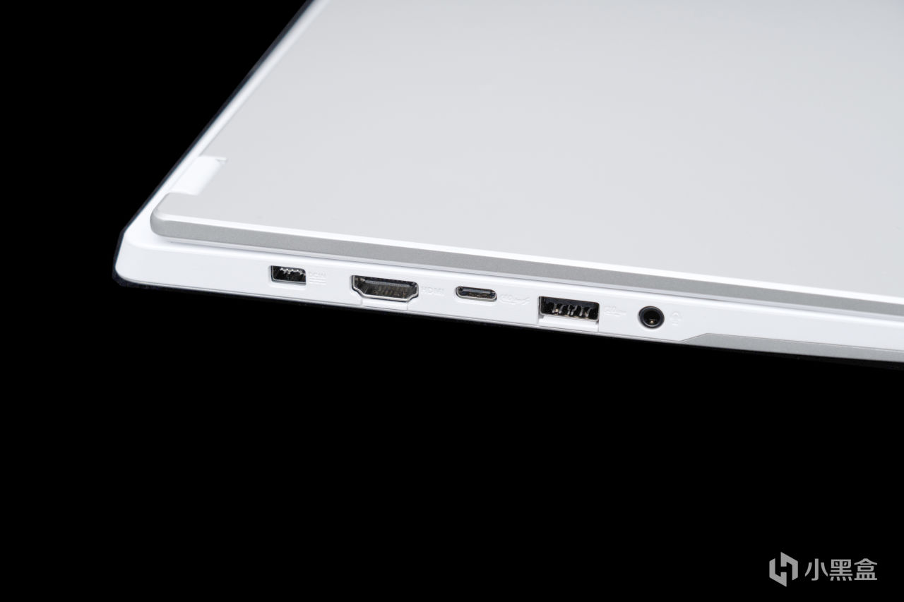 天选Air的接口配置也算是它一个主要卖点,这也得益于锐龙的原生高配置,左手边,方形DC-IN,HDMI2.1 FRL,40G 满血USB4和10G速率的USB-A口,以及先进的3.5mm耳麦复合口,说实话这个东西确实利用率越来越低了……