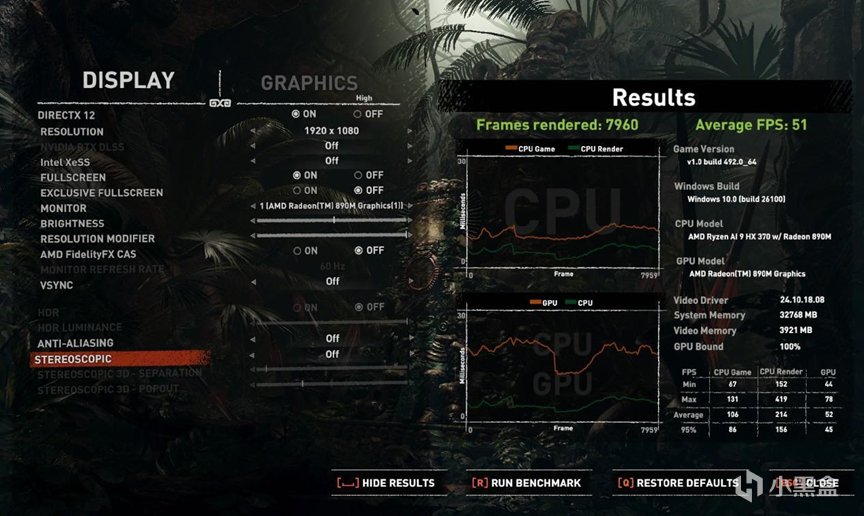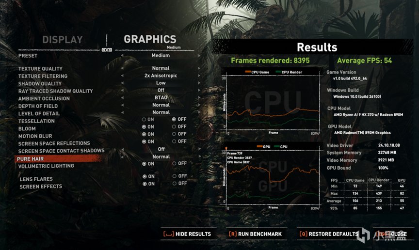 古墓丽影,1080P 中画质 平均帧数54帧,再也不是只能全低玩了!