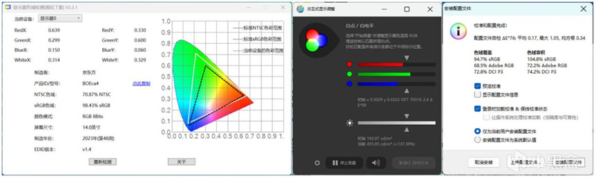 最大亮度大概在450nit,全开相当亮堂,不过不支持HDR有些可惜。色域容积达到104.8% sRGB,在目前全方位卷屏幕的大环境下谈不上出类拔萃,但也毫不落伍,还是不负水桶轻薄本的名头的。