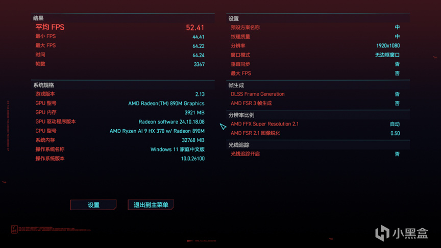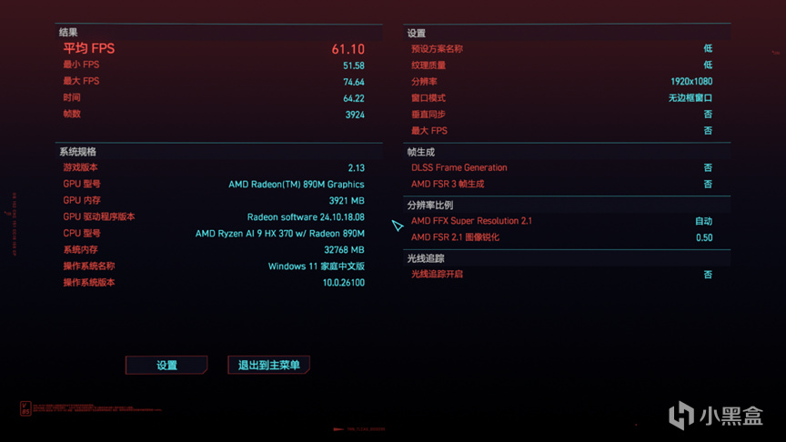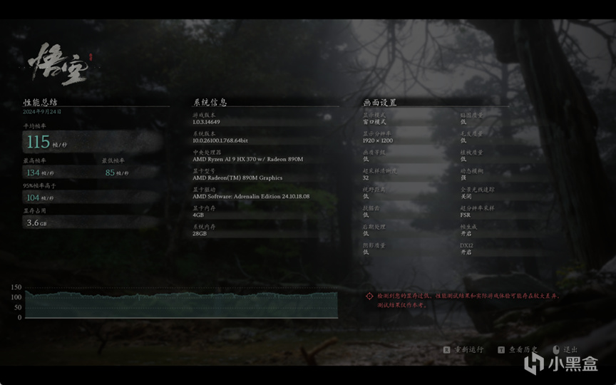 这个成绩直接给我打懵了,看来HX 370+LPDDR5X这个王炸组合对付虚幻引擎确实是有东西,可以说是流畅玩无压力。而且黑神话悟空是明确支持AFMF2的,再加上支持可变显存(VGM),最大化的释放集显游戏性能。