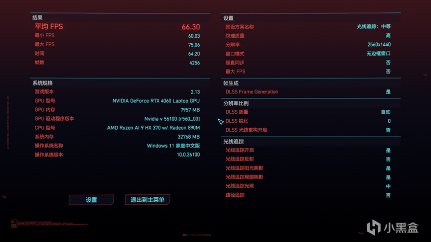 2077则是跑了3组结果。2K 窗口化 光追中等 66帧已经可以确保流畅玩。
