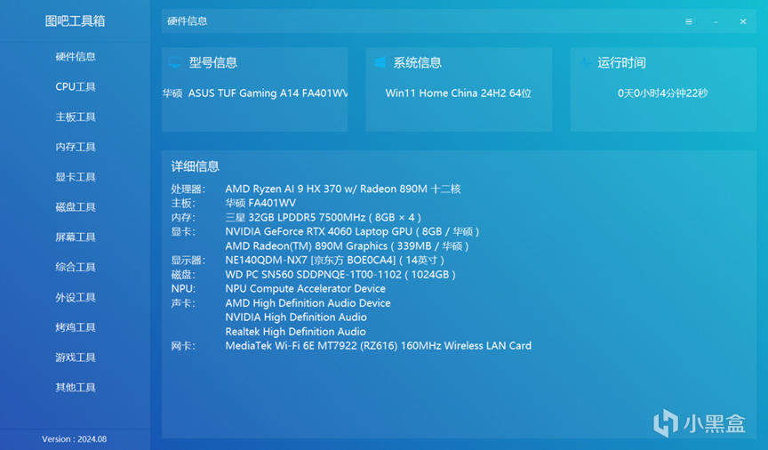 无线网卡是MTK的7922,也就是RZ616,支持WIFI6E,目前在迷你主机和笔记本上多见使用,实际效果用下来感觉还不错。