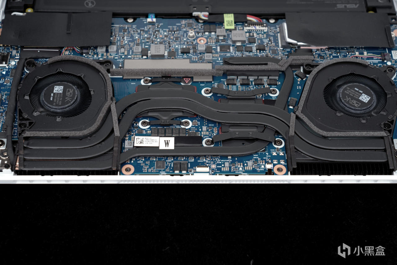 CPU和GPU共享三热管双风扇的散热配置,热管粗度还可以,有一定的散热规模,但是没看到具体是用了硅脂、液金还是相变工艺的描述就不随意拆了。