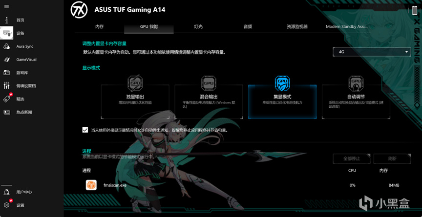 但是一旦到了适合游戏和高负载场景使用的增强模式,那就有了插入AC适配器时候专属的CPU 42W+GPU 70W,直接开飚,但是测试帧数上确实提升不明显……GPU温度也从81度提升到86度。