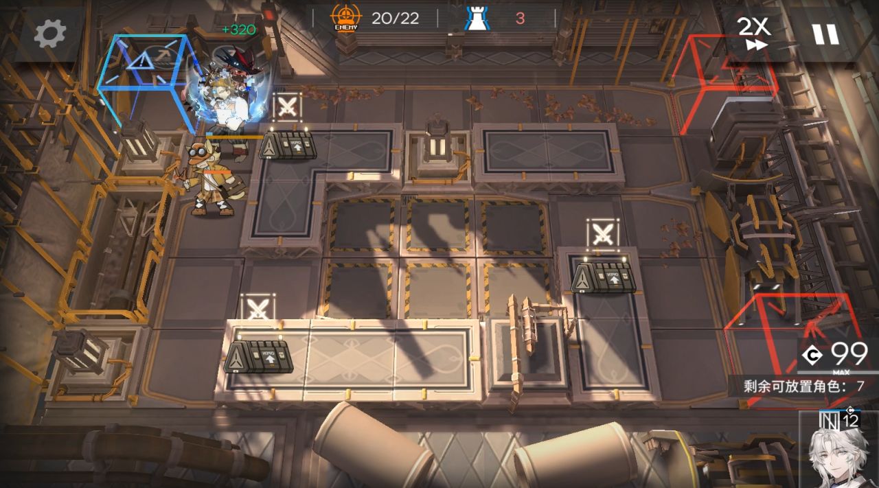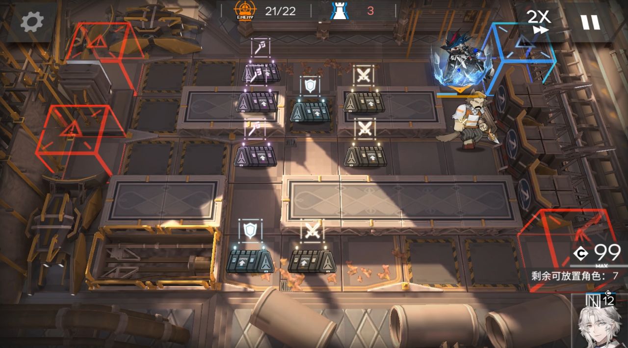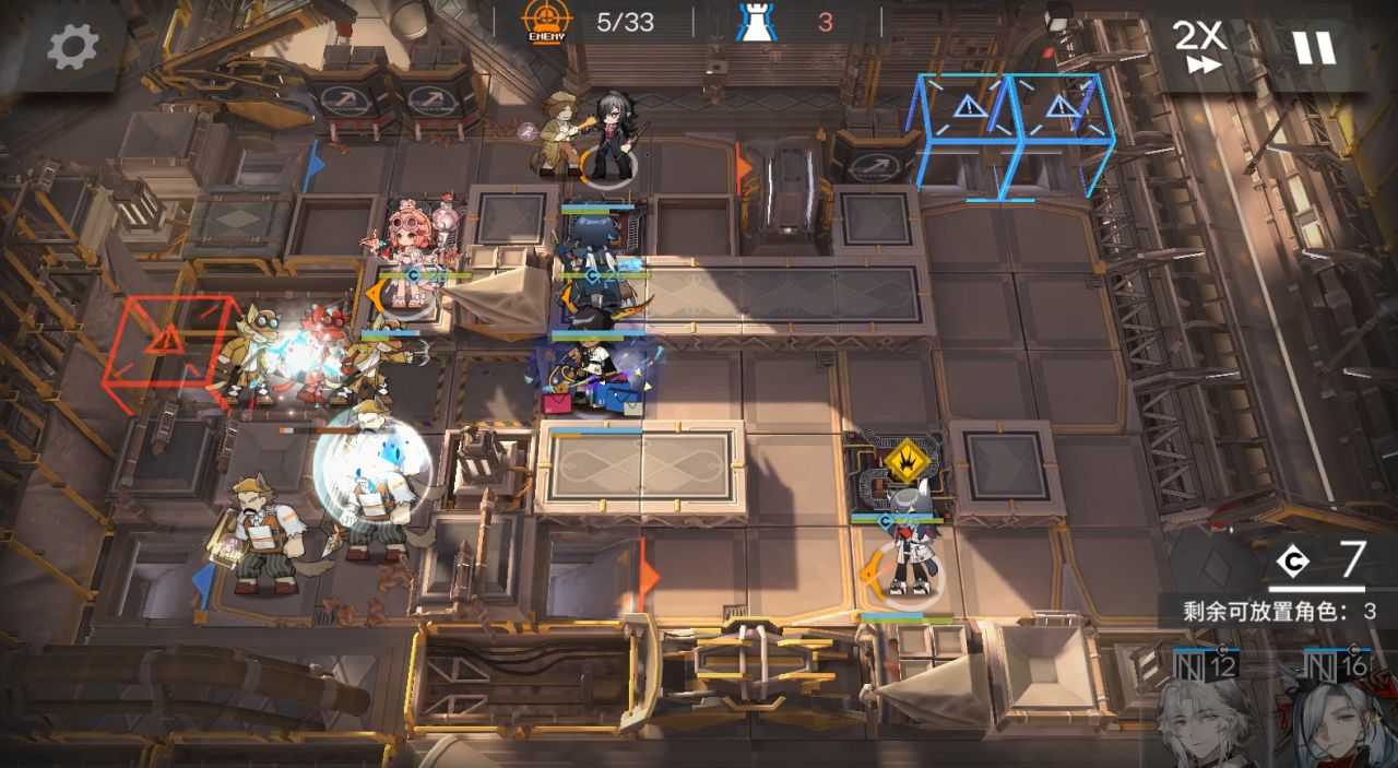 堵門速刷,依次部署山,維朝上開1次技能,lgs朝上掛機就行。注意lgs血量如下圖,練度低的帶個醫療。開啓一下維左下角道具完成蝕刻章。
