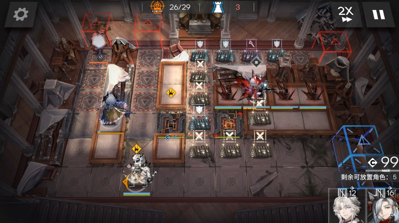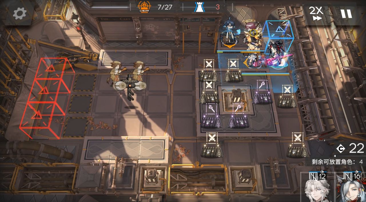 依次部署先鋒朝左立刻開技能部署棘刺朝左,煌朝左,醫療朝上掛機。