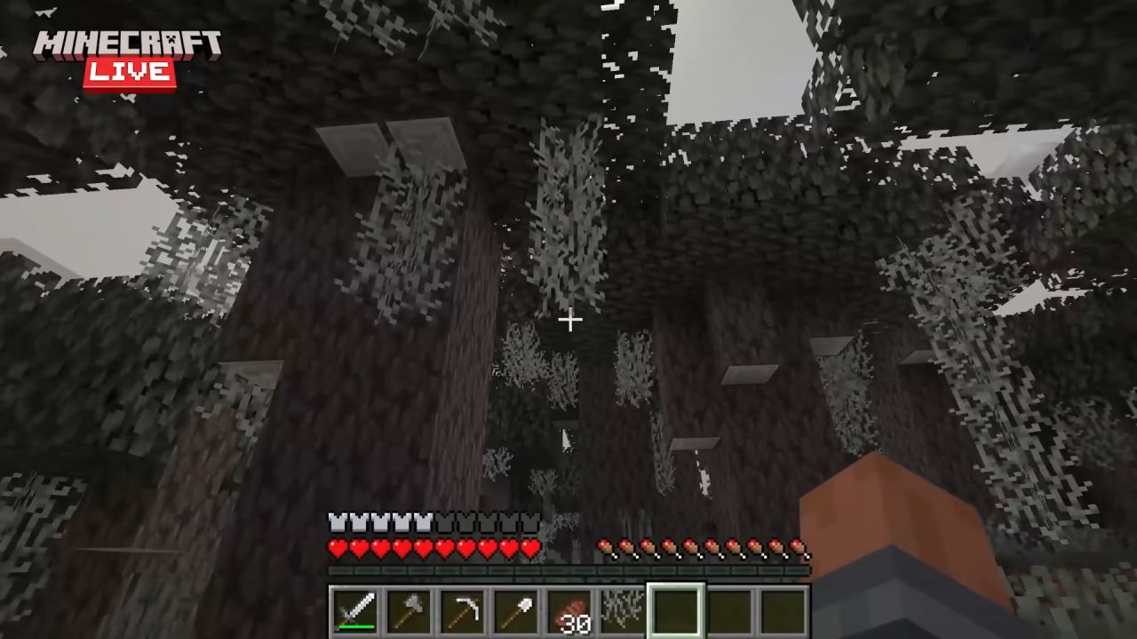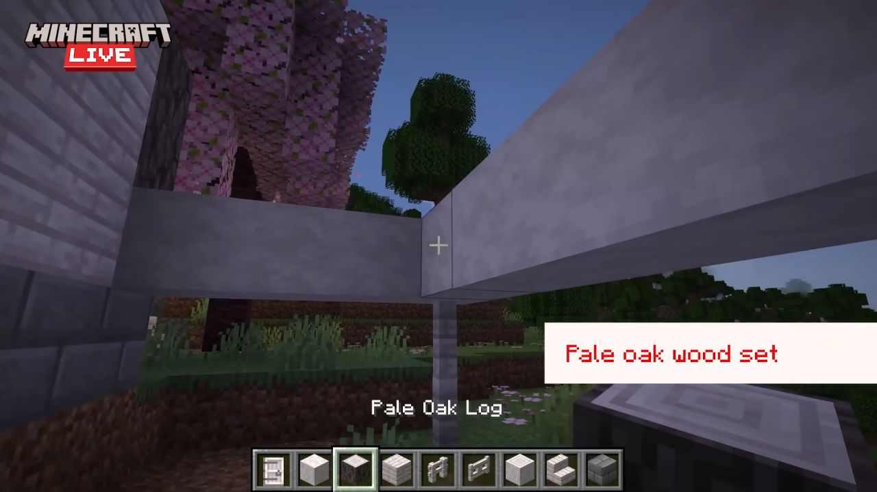 2.苍白花园中的树为苍白橡木(Pale Oak),树上会垂吊苍白色的苔藓(Hanging Moss),树木砍伐以后合成的所有木制方块都是苍白色的,可以用于建造一些灰白色为主色调的建筑物。