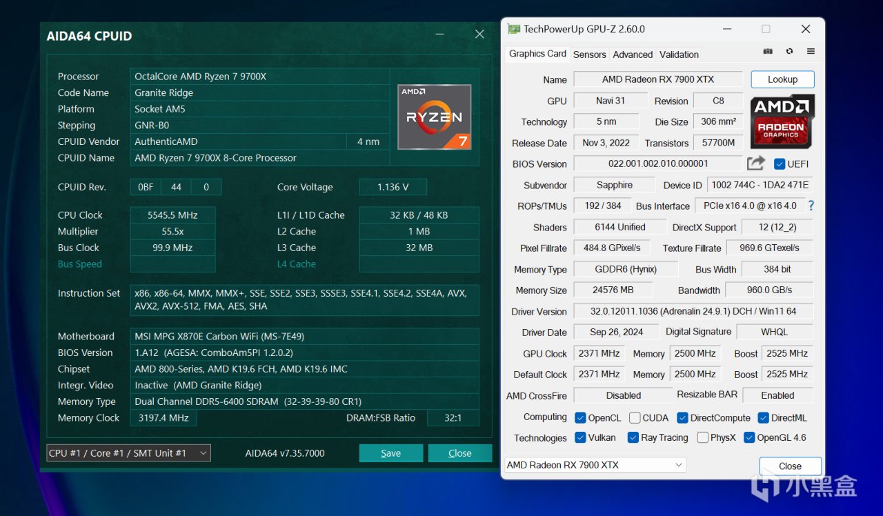 簡單來介紹一下測試環境,銳龍7 9700X開啓PBO技術便於發揮最大CPU性能,搭配內存是兩根DDR5 6400C32 16GB*2(UCLK=MEMCLK同頻)組成雙通道,並在BIOS中開啓Resizable BAR技術達到最大化顯卡性能,操作系統是Windows 11 23H2最新版本,顯卡驅動是AMD Adrenalin 24.9.1 WHQL認證正式版,驅動已經爲遊戲提供優化支持。