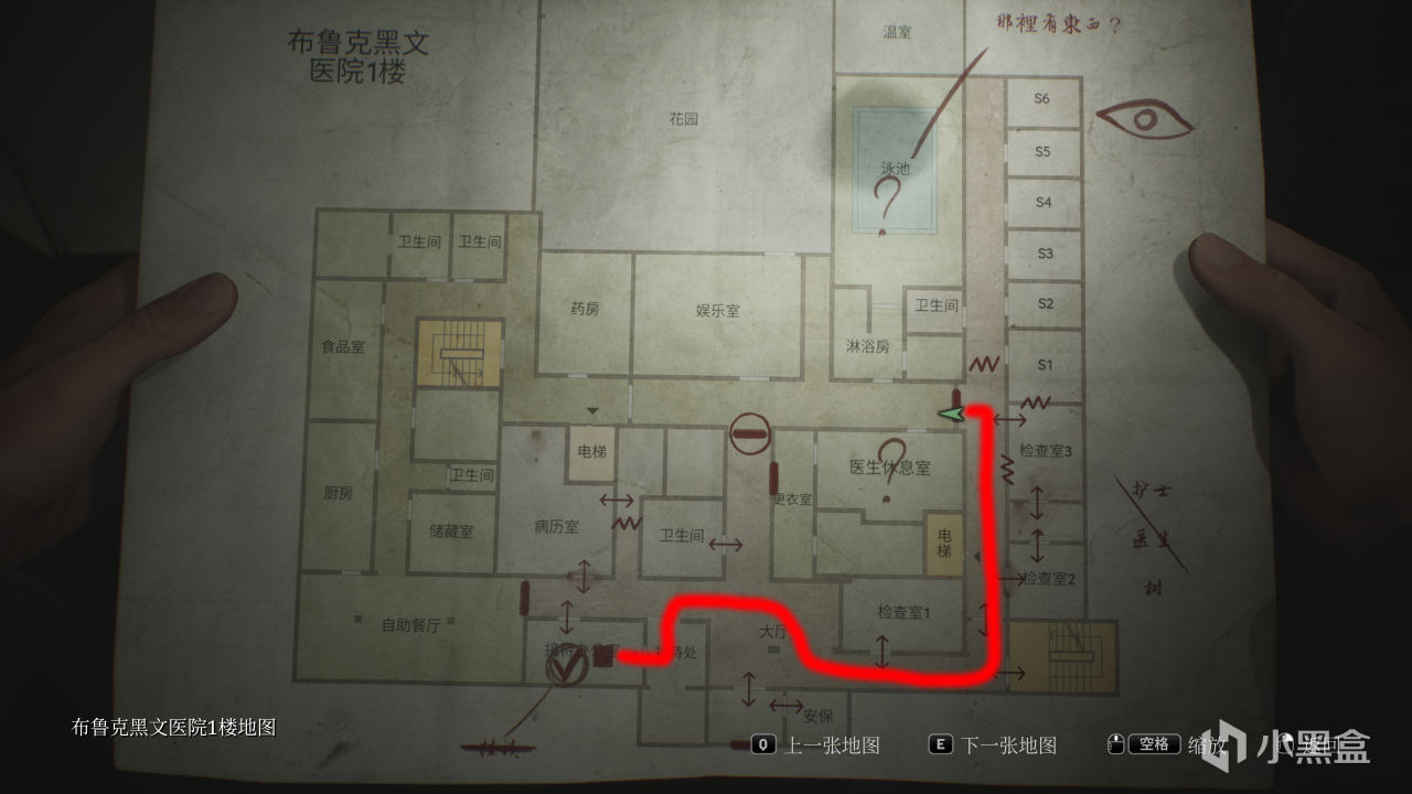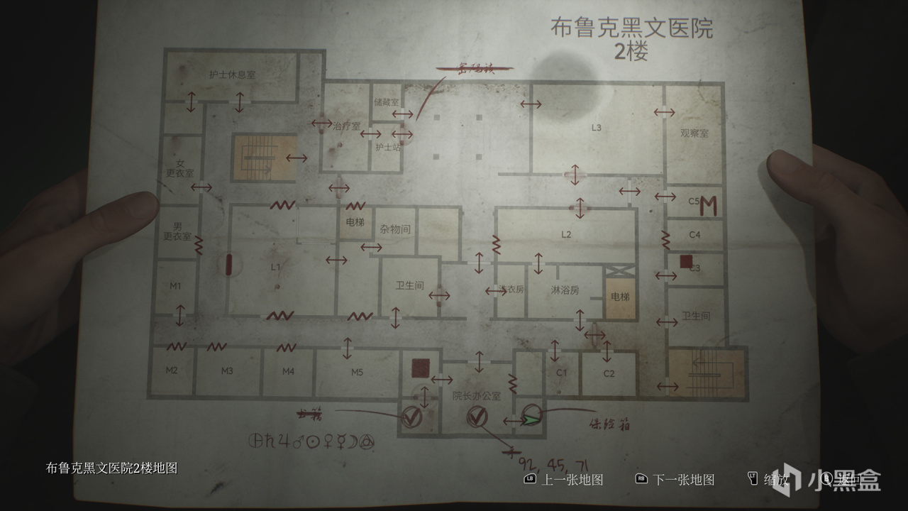 遊戲地圖設計很挺現代化,基本上就是“一個大區域——通道附帶小區域——下一個大區域”這種形式推進,遊戲內提供的區域地圖很直觀,主角走到哪個房間都一清二楚,並且地圖機制會幫你標註探索過的區域——哪條路是堵死,哪條路是可以通行,甚至保險箱、相關密碼等重要信息都會標註在地圖上,即便是路癡對照地圖一看鐵定能認路,當你卡關時(除解謎外),那一定是遺漏了哪裏沒有開鎖和開門。隨着進度推進,部分地圖也會通過“裏世界”的形式進行重新構建,此時恐怖氛圍感也會更強。