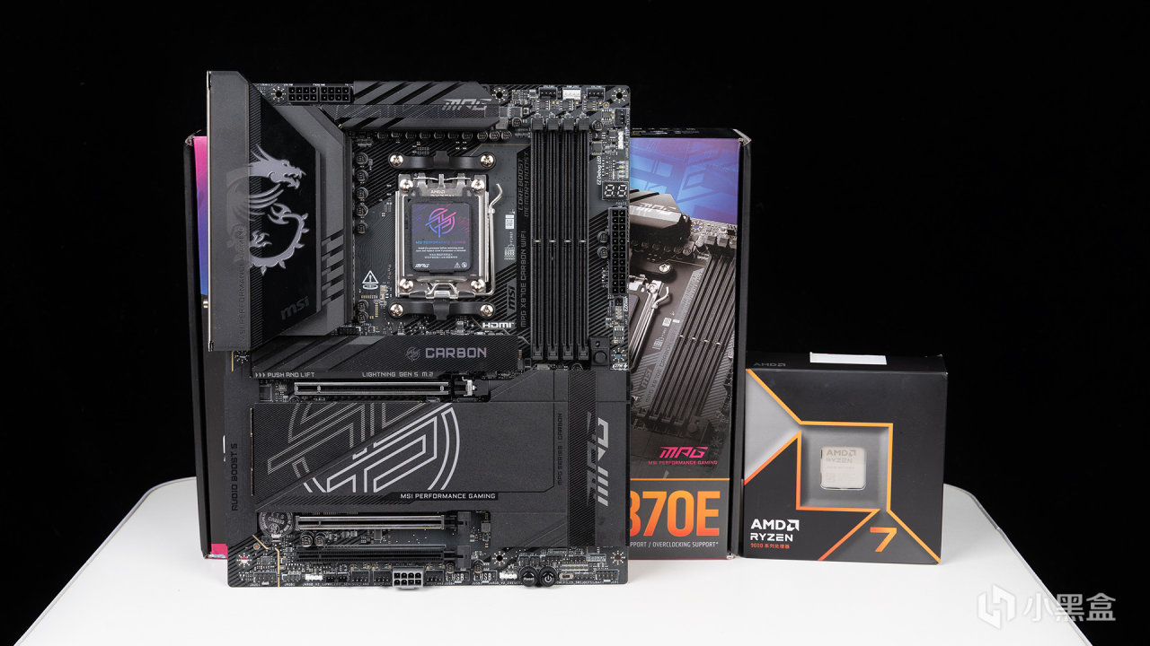 搭配測試CPU是AMD銳龍7 9700X,其主板座駕是最近才推出的微星MPG X870E CARBON WIFI暗黑,外觀上結合了家族式碳纖維風格+浮雕效果+黑鏡背景處理,它還有堪比旗艦級的供電用料——18+2+1相規格,並且每顆MOS最大電流可達到110A,駕馭銳龍9 9950X就挺合適。主板的擴展性和功能性也直接拉滿,比如後置I/O配備了多達13組USB接口、5G+2.5G+Wi-Fi 7網絡配置、顯卡和SSD快拆設計等。