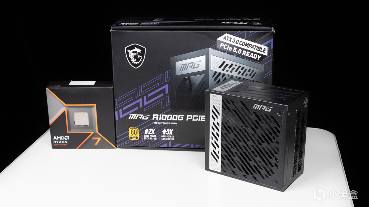電源方面,爲了驅動9700X和RX 7900 XTX頂配遊戲配置組合,準備了微星的MPG A1000G PCIE5這款電源,它通過了ATX 3.0和PCIe 5.0標準,採用原生12VHPWR供電接口,最高可爲顯卡提供600W,並能承受3倍顯卡峯值功耗。除此之外,它還有全日系105℃電容、智能啓停技術、10年質保等賣點。