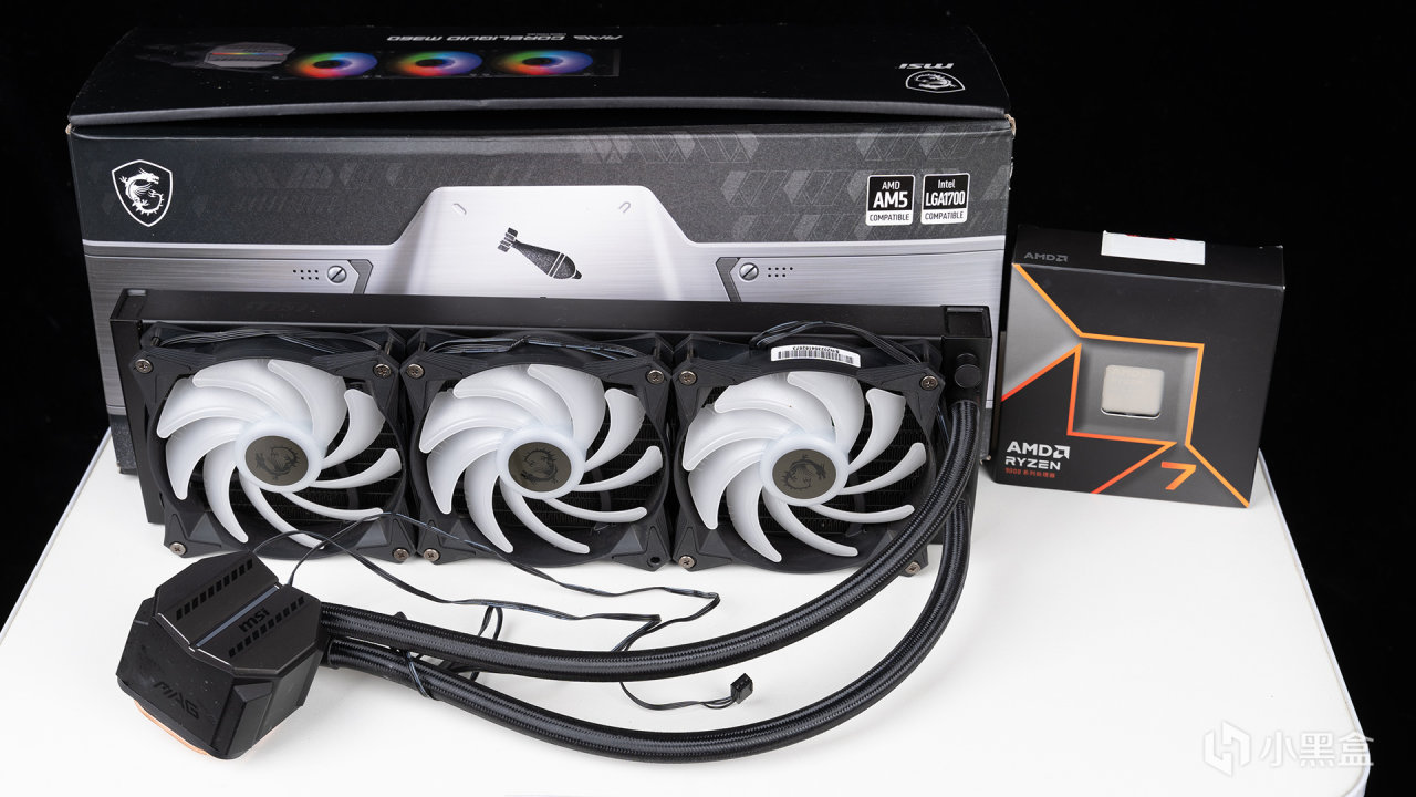 爲了完全發揮9700X的性能,配備了來自微星的MAG CORELIQUID M360迫擊炮,它最大的亮點是配備了迫擊炮經典的軍火庫風格冷頭,內置高耐久三相減震馬達,具備微凸銅底,提供三枚高性能ARGB風扇,可保證優秀的散熱性能,它不足五百元的售價性價比也很高,很適合AMD平臺用戶。