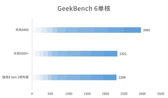 在反應CPU性能的GeekBench 6測試中,天璣9400工程機單核得分爲2965分,多核爲9162分,相比上代機型提升巨大。