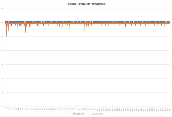 先是經典的《原神》遊戲幀率測試,在極高畫質+60幀的設置下,30分鐘須彌跑圖測試後,天璣9400工程機的平均幀率爲60幀,板載功耗爲3.63瓦。相比之下,iPhone 16 Pro Max平均幀率爲59.4幀,板載功耗爲3.36瓦。