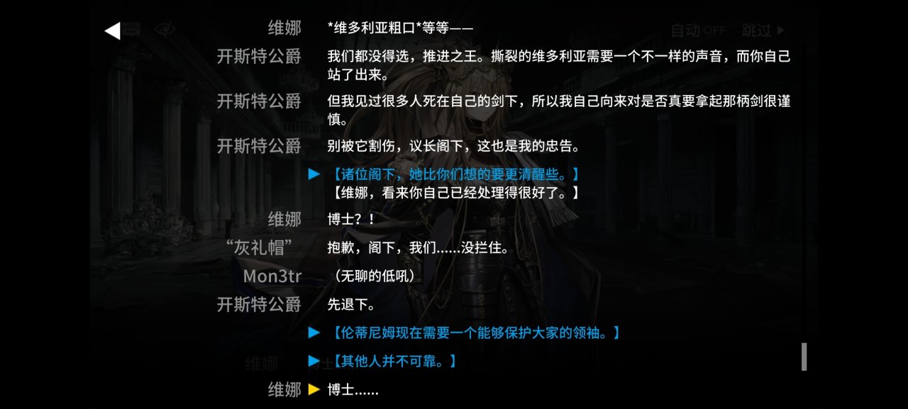 ②博士代表羅德島面對維多利亞的公爵們直接明示支持維娜,羅德島會提供醫藥和科技支持。m3充當趙雲的角色保護着博士