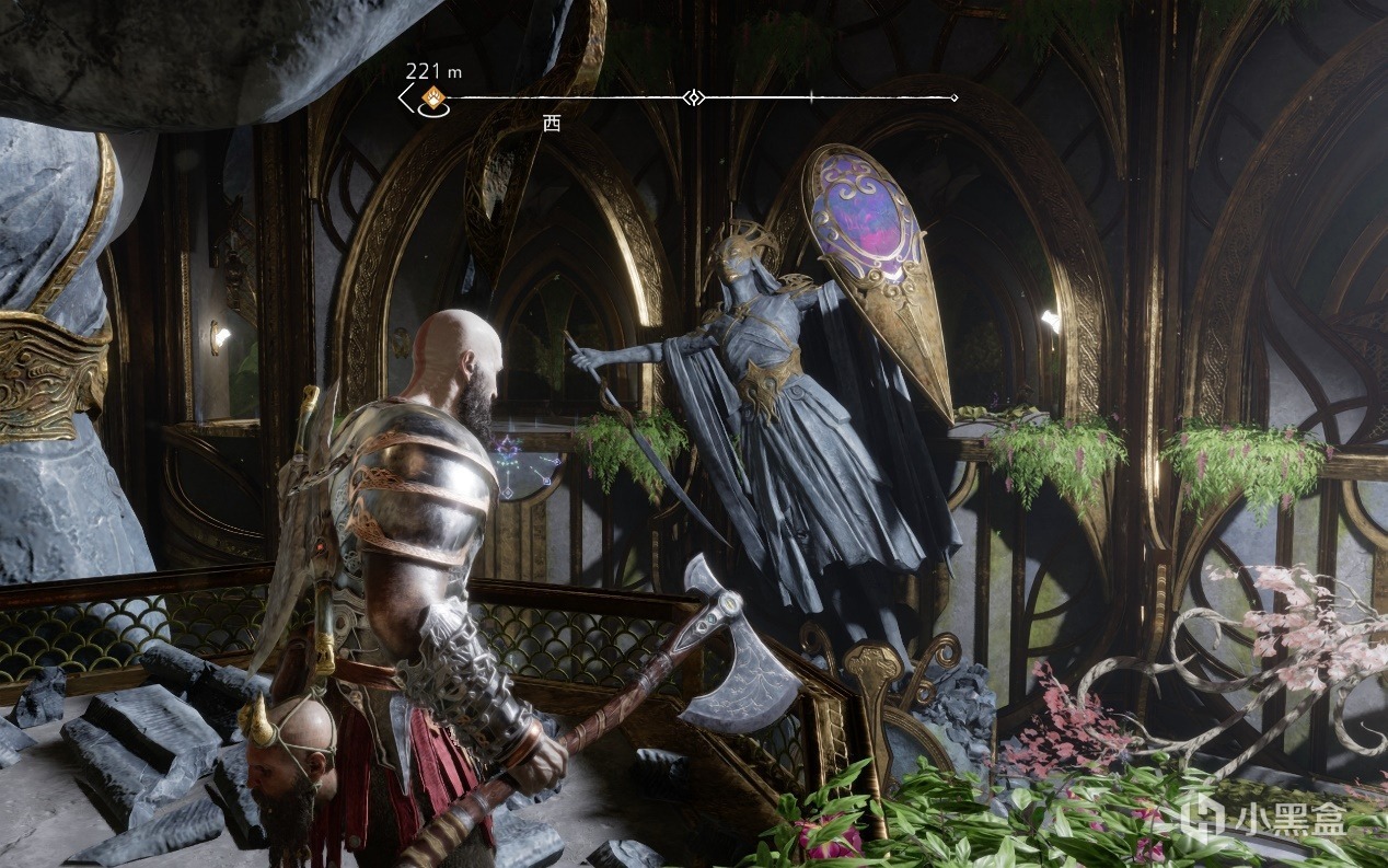 《战神五》给我印象很深刻的一个解谜就是这个女神举盾像。我知道解谜的机制,就在地图上利用反弹扔斧头,但是因为没看到那个翅膀可以扯断所以卡关了整整十分钟,在那找角度“欸为什么不行啊”。