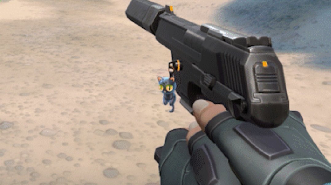 套裝包含一個稱號[=^._.^=],一個卡面[搗蛋鬼出沒],一個噴漆[喵嗚],一個掛飾[雙面黑貓]。值得一提的是本掛飾既有明暗場景變化,也有基於場景明暗的擊殺光效大家覺得如何呢