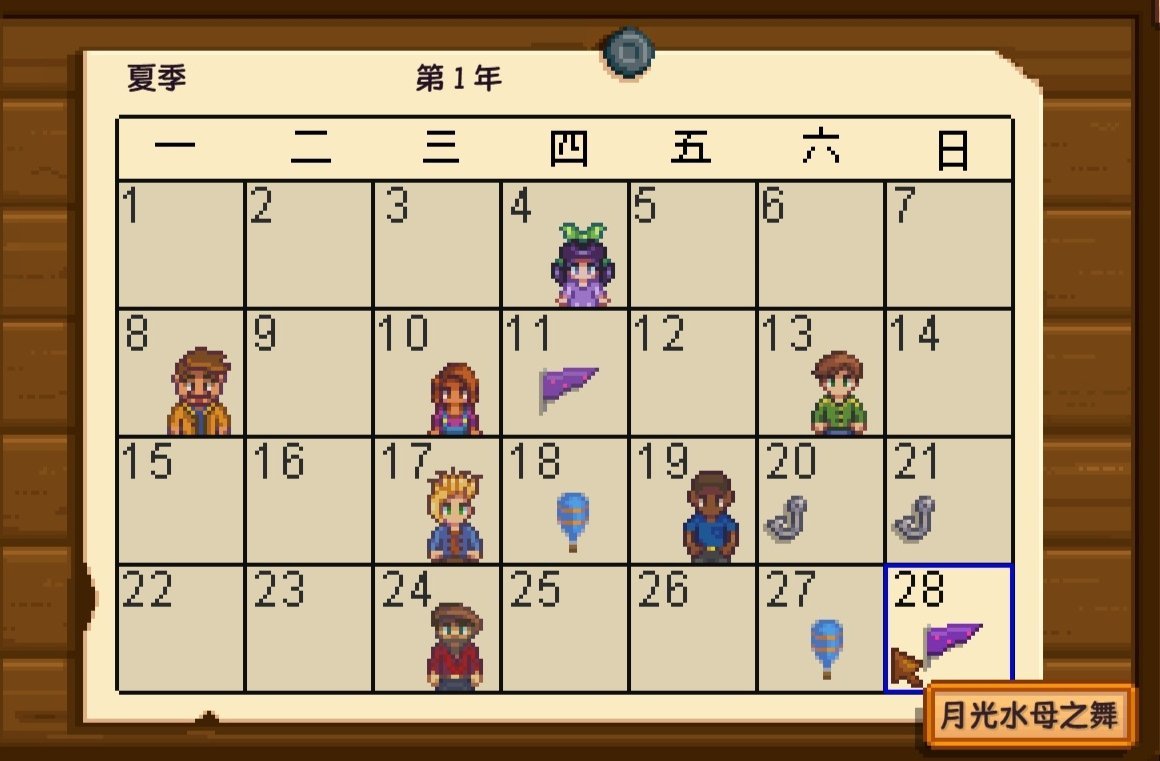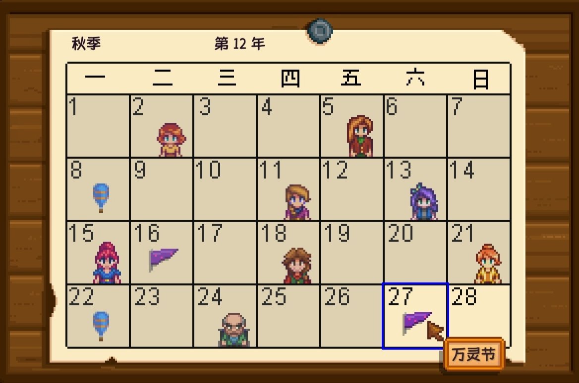 大家好,我是阿q,最近星露谷突然史低相信也是入坑了很多的新人(上鉤了!),本篇文章就給大家彙總介紹一下星露谷目前爲止的所有節日,幫助大家瞭解,下方爲目錄,是根據遊戲時間去排序的,各位可根據自己想查詢的節日去快速下滑尋找: